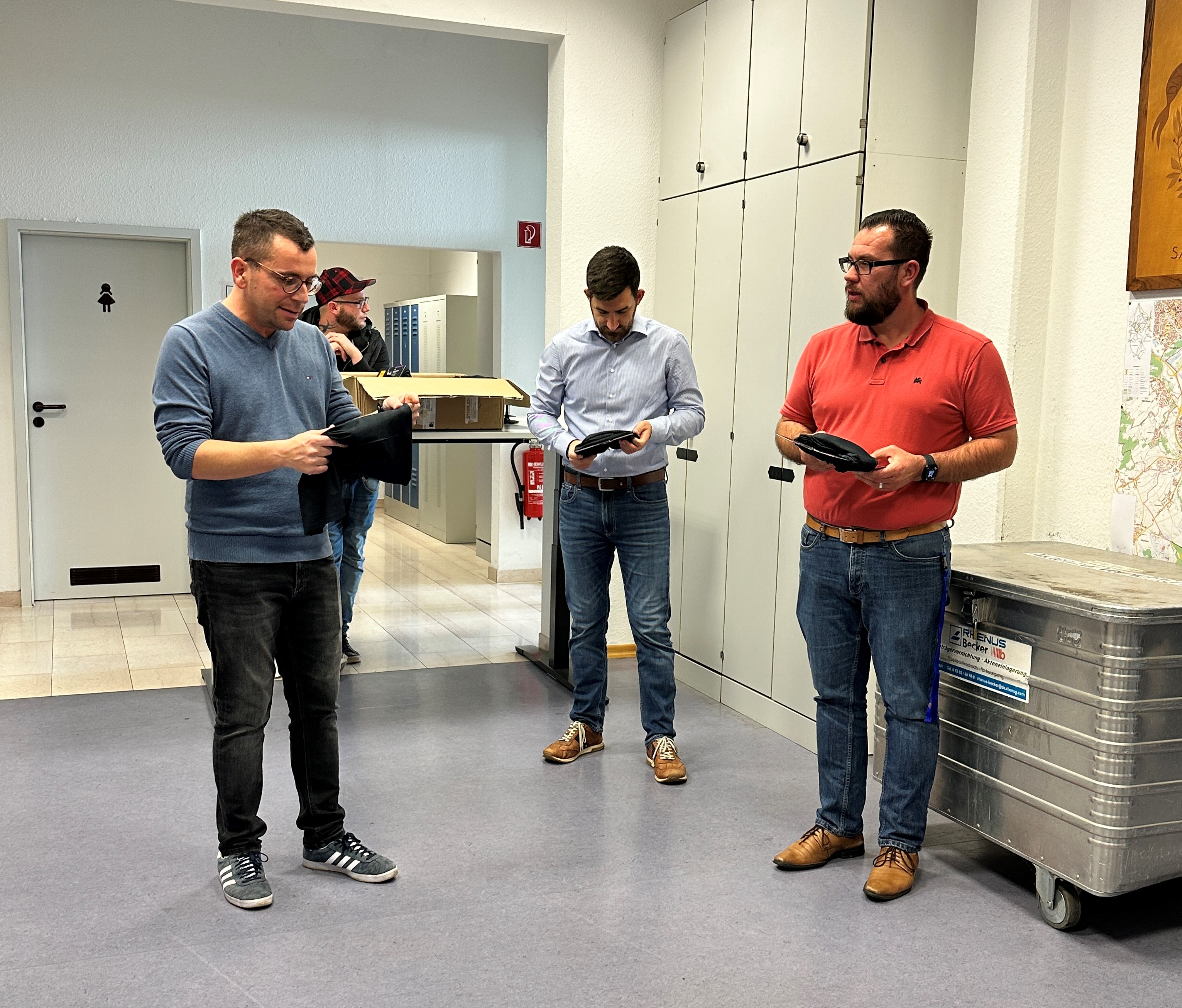 Gemeinsam mit Bürgermeister Carsten Quirin und Christian Bost, Amtsleiter des Amtes für Ordnung und Bürgerdienste, inspizierte und verteilte er persönlich die neue Schutzausrüstung. Die neuen Schnittschutzschals zeichnen sich durch ihre dünne, unauffällige Beschaffenheit aus und integrieren sich problemlos in den Arbeitsalltag. Trotz ihres dezenten Erscheinungsbildes bieten sie effektiven Schutz vor Schnittverletzungen, was die Sicherheit der Mitarbeiter erhöhen wird.