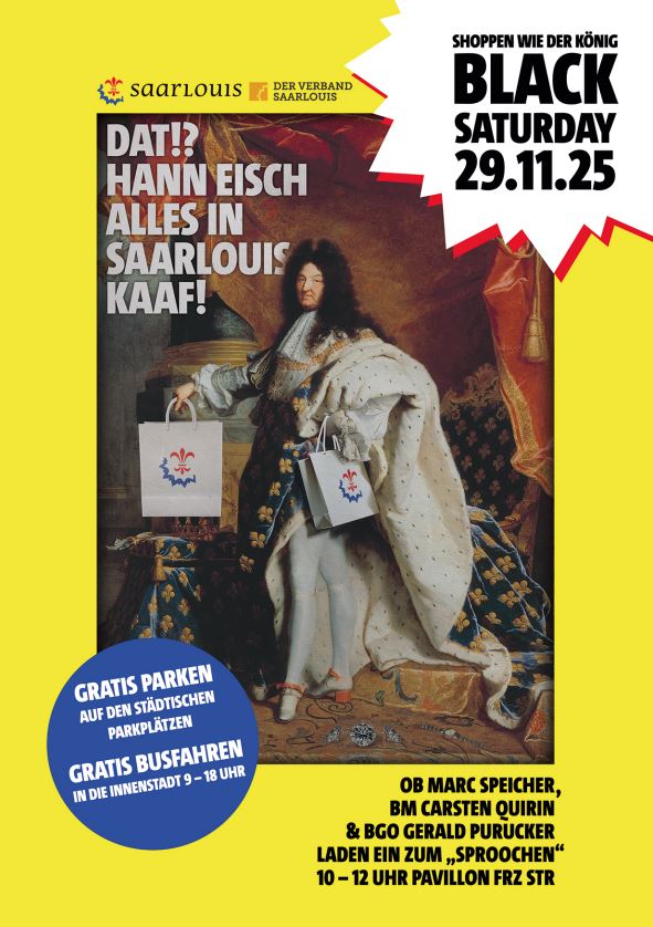 Der Black Saturday 2025 ist eine Initiative der Europastadt Saarlouis und wird auch dieses Mal vom Verein „Der Verband Saarlouis e.V.“ unterstützt. Der Tag soll Bürgerinnen und Bürger aus dem Großraum Saarlouis für die lokale Einkaufs- und Erlebnisvielfalt begeistern.