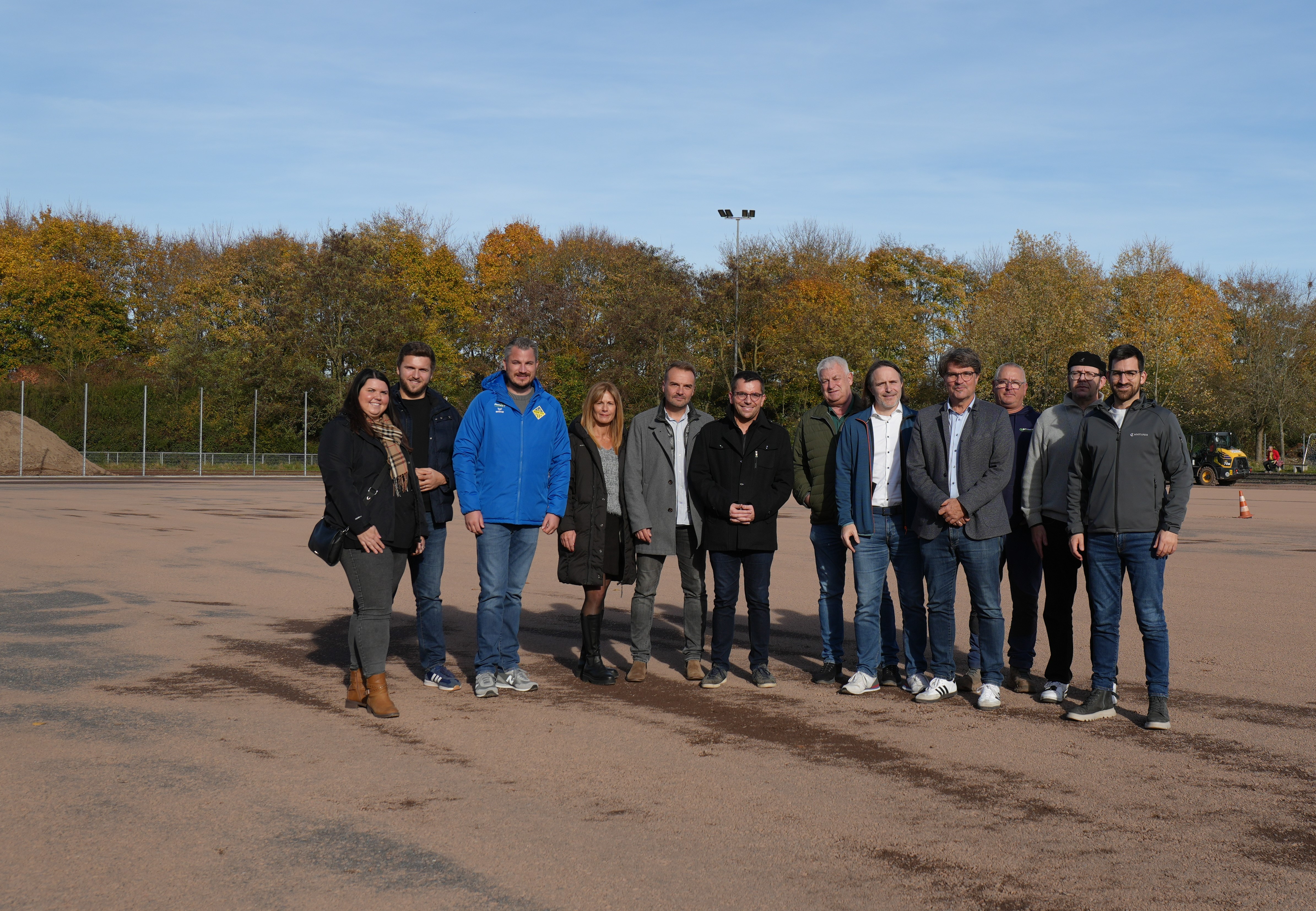 Oberbürgermeister Marc Speicher, Bürgermeister Carsten Quirin und Beigeordneter Gerald Purucker waren mit den zuständigen Mitarbeitern des Rathauses vor Ort, um sich über den Baufortschritt zu informieren. Auch Mitglieder des SC Roden, darunter der Vorsitzende Christian Demmer und sein Vater Peter Demmer waren vor Ort, um sich über den Stand der Arbeiten zu informieren.