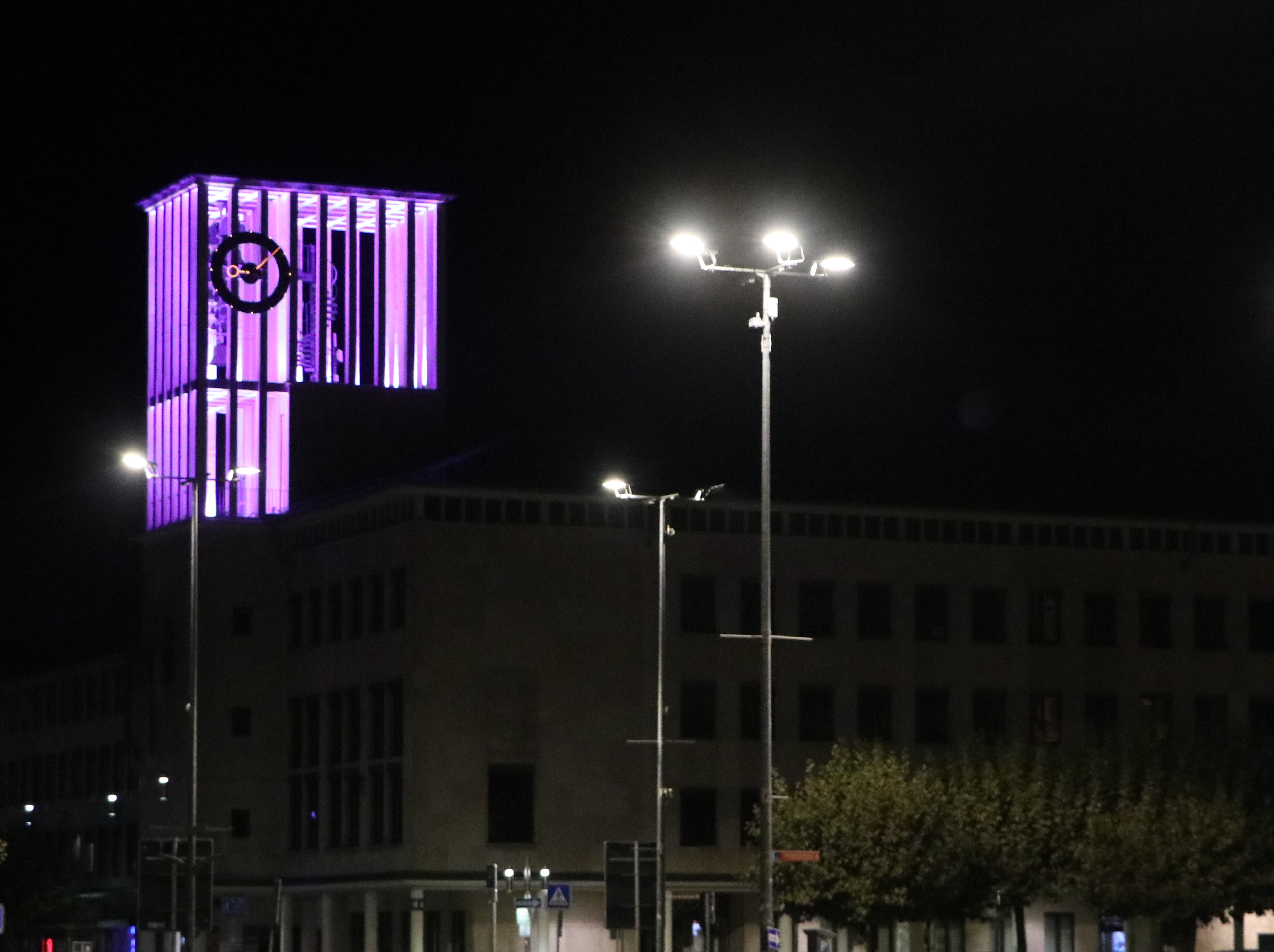 Schon seit 2008 steht der Monat Oktober ganz im Zeichen der Aufklärungsarbeit gegen das sogenannte Rett-Syndrom und soll die Erkrankung in den Fokus der Öffentlichkeit rücken. Dazu erstrahlen zahlreiche Gebäude weltweit in der Farbe Magenta – so auch der Rathausturm in Saarlouis. Die Farbe verkörpert einerseits Würde, Sensibilität und Mitgefühl, andererseits mischen sich in ihr Rot (Emotion) und Blau (Verstand) – ein Symbol für die Verbindung zwischen menschlicher Zuwendung und wissenschaftlichem Fortschritt.