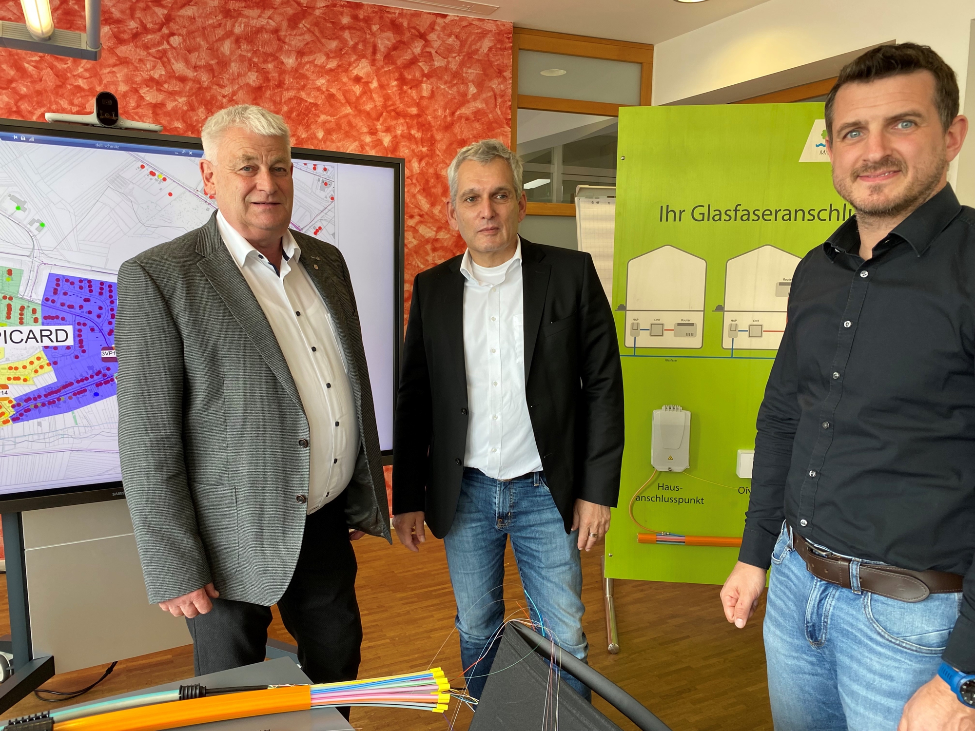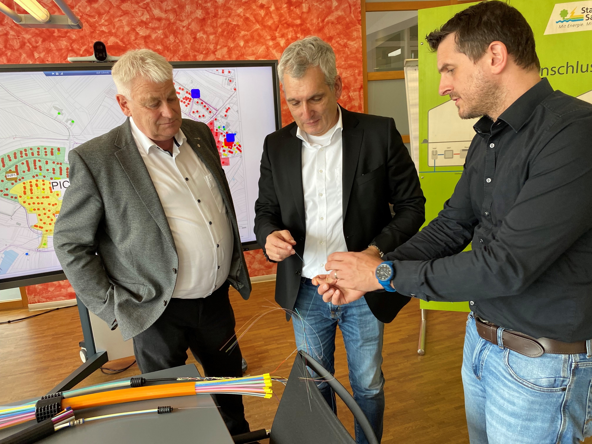 Von links: OB Peter Demmer, Dr. Ralf Levacher (technischer Geschäftsführer der Stadtwerke Saarlouis) und Frank Schmitz (Leiter Glasfaser Stadtwerke Saarlouis). Fotos: Sascha Schmidt