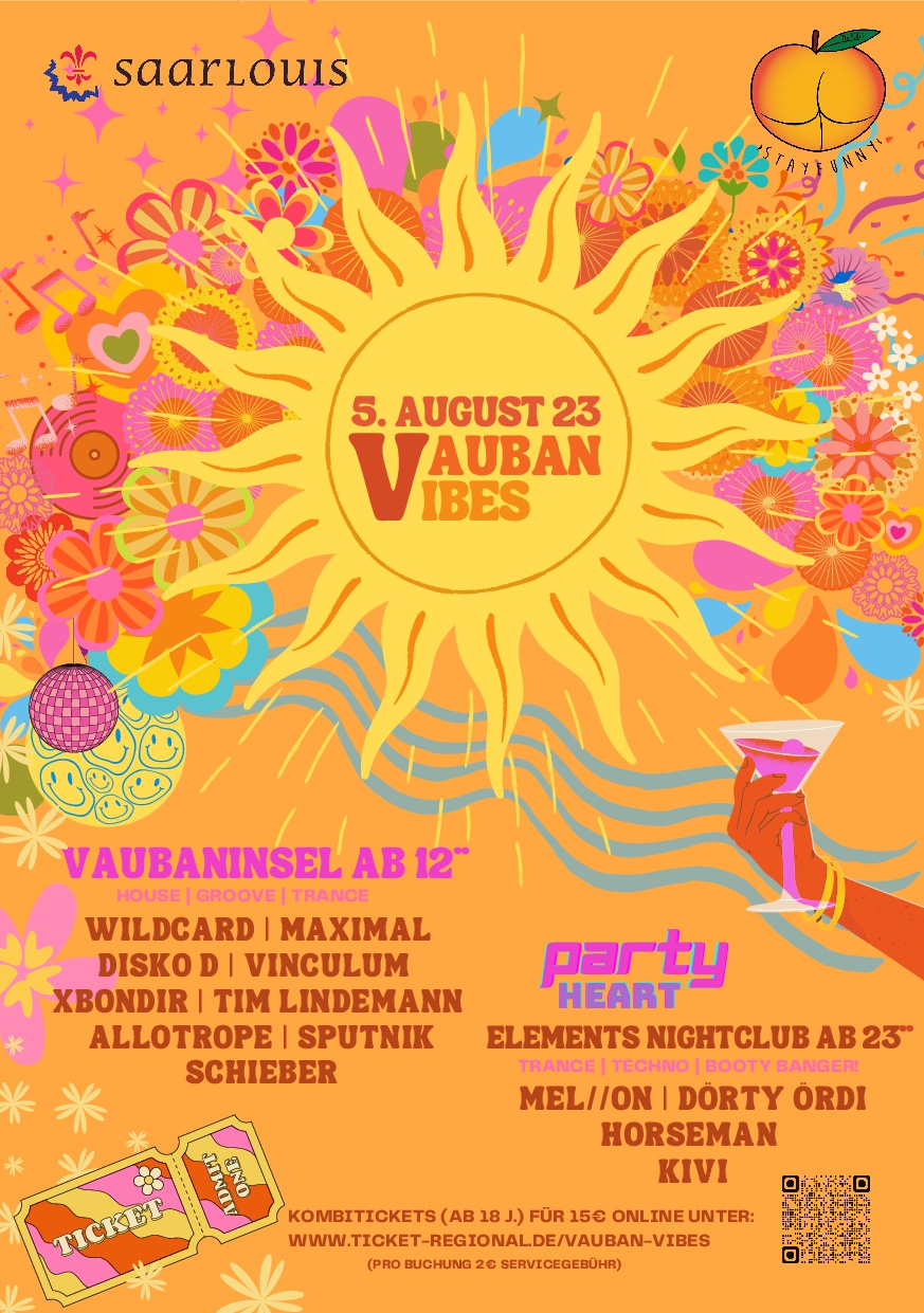 Tickets für die Vauban Vibes sind ab 10 Euro (Kombiticket mit Aftershow ab 15 Euro) an allen bekannten Ticket-Regional VVK-Stellen (z.B. Pieper – Bücher oder Tourist-Info Saarlouis) sowie online unter www.ticket-regional.de erhältlich.