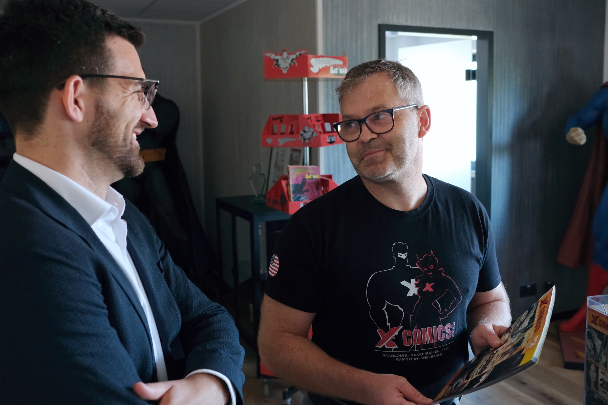 „Für uns in der Stadtpolitik ist es wichtig, dass Saarlouiser Unternehmen die Möglichkeit haben, in Saarlouis zu wachsen“, erklärte Quirin. „Das war die Idee auf dem Lisdorfer Berg und wir sind stolz darauf, dass mit X-Comics aus einer Leidenschaft heraus ein solcher Leuchtturm für unsere Stadt entstanden ist.“