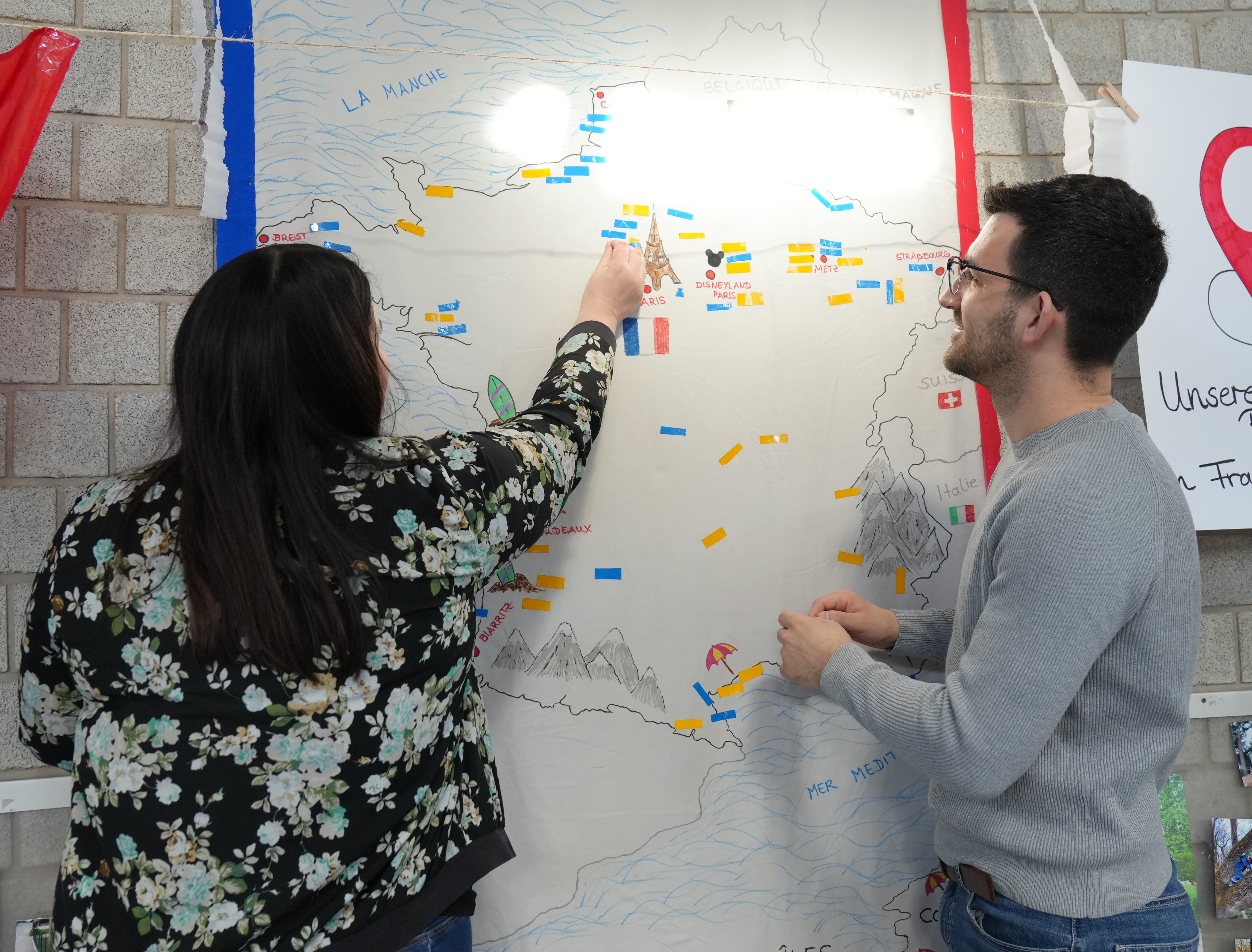 Das Fest bot eine Vielzahl an Stationen, die allesamt mit Frankreich in Verbindung standen. Die Kinder konnten sich unter anderem bei einer Boule-Station sportlich betätigen, ihr kreatives Talent beim Nachbau des Eiffelturms ausleben oder in einer Verkleidungskiste, die sich an der Pariser Mode orientierte, sowie ihre geografischen Kenntnisse an einer Landkarte unter Beweis stellen. Besonders spannend war die Möglichkeit für jedes Kind, die Orte, die es bereits in Frankreich besucht hat, auf der Landkarte zu markieren und Urlaubsfotos aus der jeweiligen Region auszuhängen.