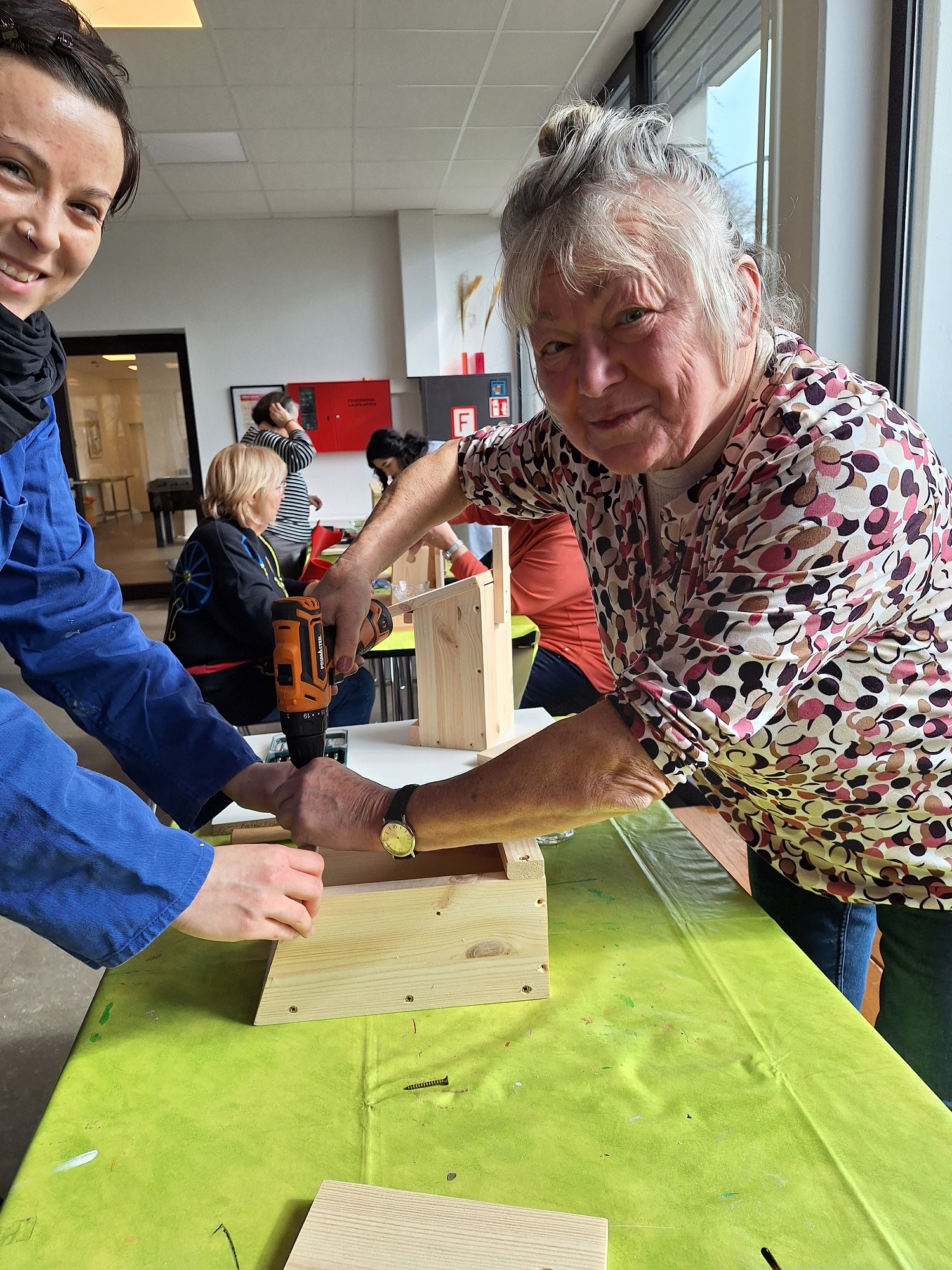 Rund um die Osterferien werden in diversen Gruppen aus Bausätzen wundervolle, bunt bemalte Nistkästen für Vögel und Fledermäuse entstehen. Es gibt viel zu tun, denn es sollen 30 Vogelnistkästen und 15 Fledermauskästen hergestellt werden. Etliche Besucherinnen des Seniorentreffs im Esther-Bejarano-Haus wurden schon aktiv und haben den Akkuschrauber, Hammer und Pinsel geschwungen, um sich auch für den Natur- und Artenschutz im Stadtgarten einzusetzen. Bei weiteren Projektterminen ging es mit Schülern im School’s out und Schülertreff genauso fröhlich und anpackend zu wie in der Mädchengruppe des Hauses. Voller Freude und Elan entstehen aktuell mit bunten Farben verzierte Unikate. Den Vögeln und Fledermäusen sind die Farben ihrer Nisthilfen völlig egal, den Besuchern des Stadtgartens werden die bunten Nistkästen in den Bäumen sicher auffallen. Mit diesen Hinguckern wird noch lange auf den gemeinnützigen Einsatz der vielen kleinen und großen Leute für eine aktive Förderung der Natur hingewiesen.