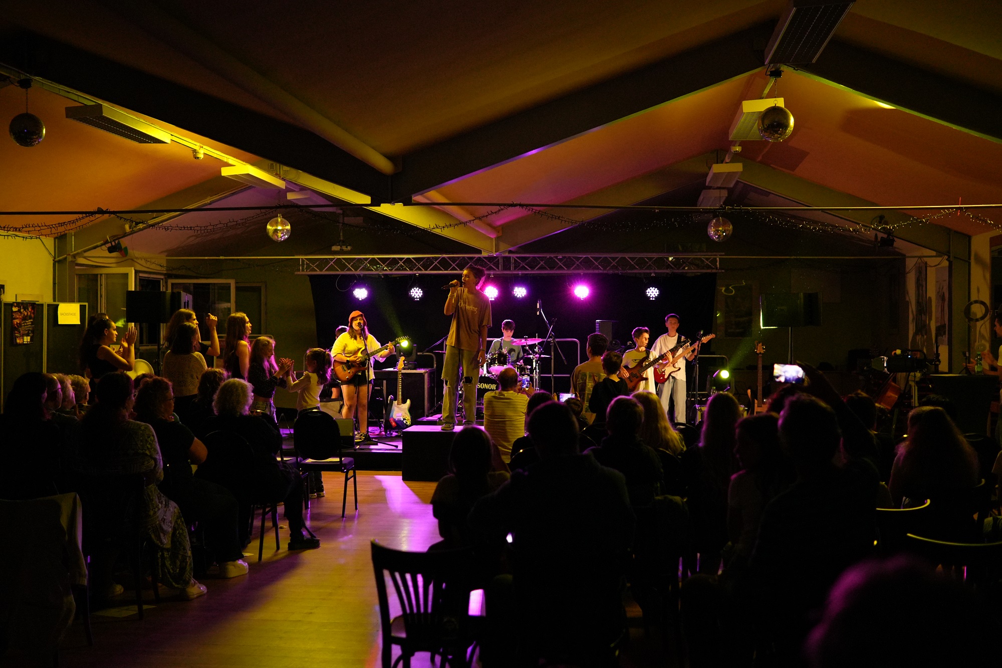 20 junge Menschen zwischen 8 und 18 Jahren wagten den Sprung auf die große Bühne und präsentierten selbst komponierte Werke sowie Interpretationen berühmter Songs. Soloauftritte und Bandperformances sorgten für eine abwechslungsreiche Mischung. Rund 200 Zuschauerinnen und Zuschauer verfolgten die Darbietungen mit Begeisterung und spendeten den Nachwuchstalenten viel Beifall. Besondere Programmpunkte waren ein Auftritt der Band der Kreismusikschule und der Jugendband „Teenitus“, die für ausgelassene Stimmung sorgten. Zu den besonderen Höhepunkten gehörte ein Auftritt der überregional bekannten Formation „KIMKOI“ aus Thüringen, die mit kraftvollen Rockrhythmen und einer mitreißenden Bühnenpräsenz die Stimmung auf den Höhepunkt trieb. Im Anschluss stellten sich die Profimusiker den Fragen der jugendlichen Künstlerinnen und Künstler. Sie berichteten von Erfahrungen aus dem Tourleben und gaben wertvolle Tipps für ein angehendes Musikerleben. „Solche Veranstaltungen fördern nicht nur den regionalen Nachwuchs, sondern schaffen auch eine wichtige Plattform für den kulturellen Austausch und das kreative Schaffen“, sagte André Piro von juz united. „Die Veranstaltung war ein voller Erfolg und wir denken schon an eine Wiederholung im nächsten Jahr“, ergänzte Anette Plewka, Fachkraft der kommunalen Jugendhilfe bei der Stadt Saarlouis.