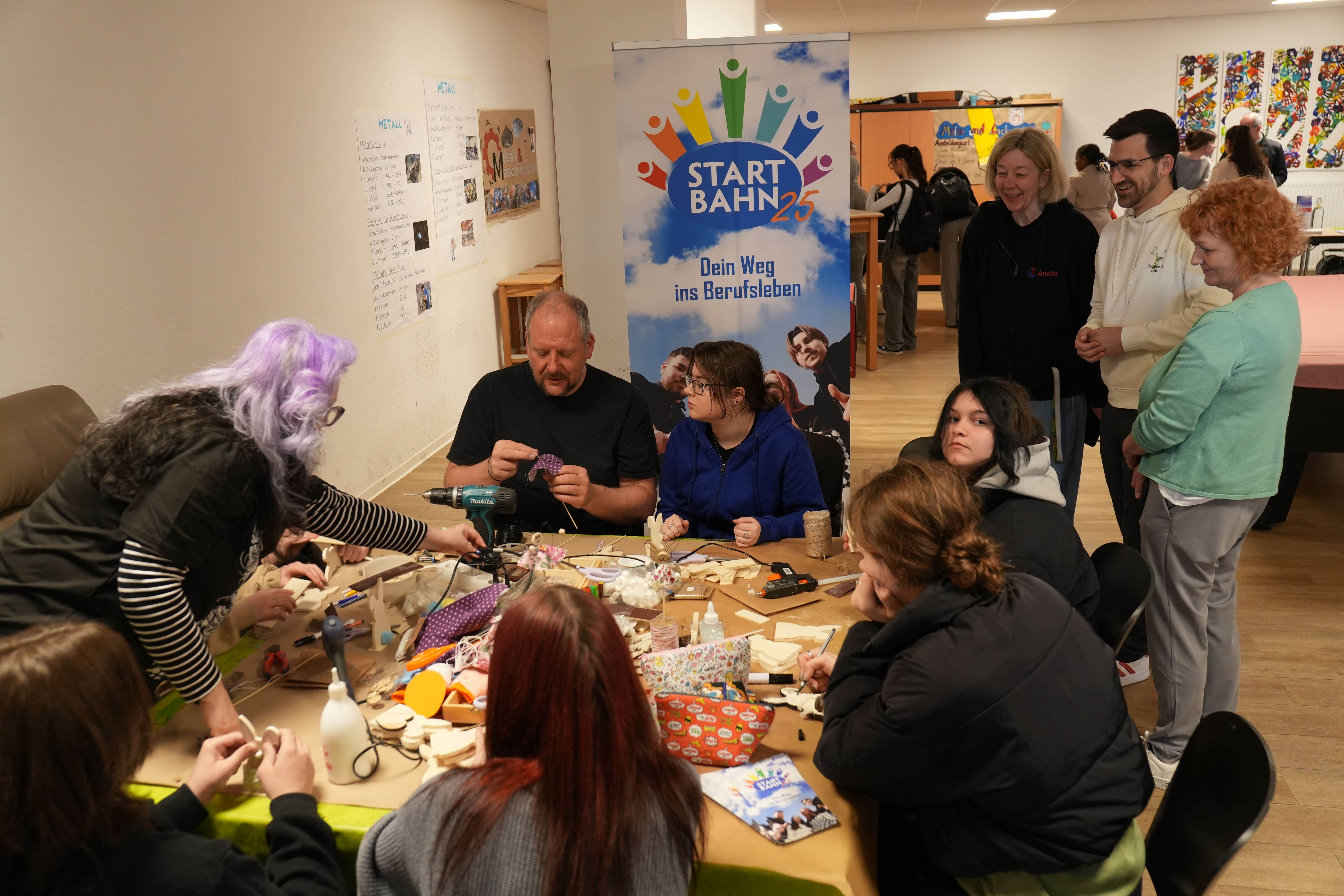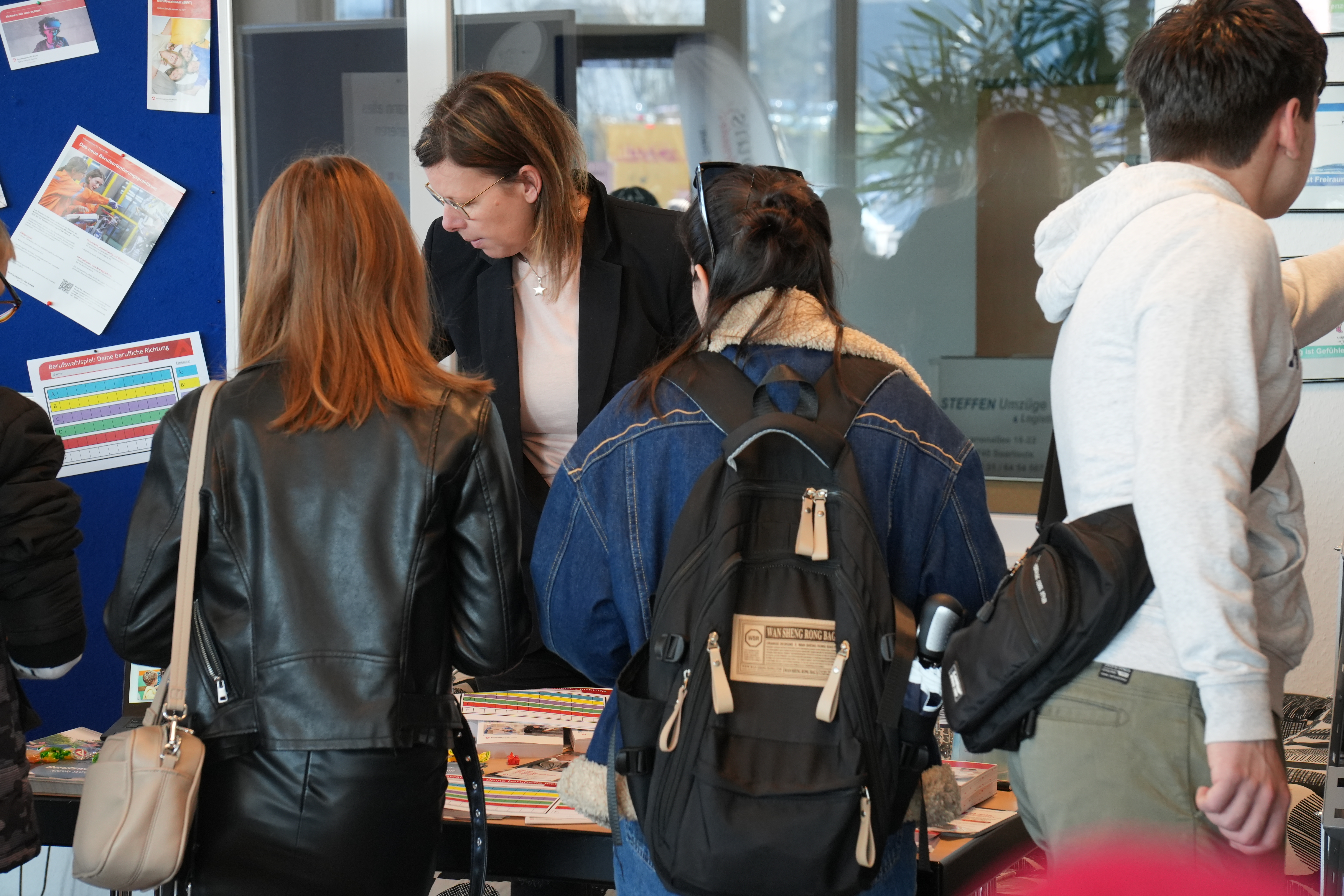Als sich um 10 Uhr die Türen im Esther-Bejarano-Haus und „YOU-Das Jugendbüro“ öffneten, strömten schon die ersten Besucherinnen und Besucher rein, um sich vor Ort über die Möglichkeiten einer Ausbildung zu informieren. An 14 Ständen gab es viel zu entdecken, insbesondere, wenn man sich noch nicht ganz im Klaren ist, wo der berufliche Weg hingehen soll. Bäcker, Raumausstatter, Postzusteller, Erzieherinnen, Schreiner, Metallbauer und viele andere informierten die jungen Gäste über die Möglichkeiten, die ihnen der entsprechende Beruf bietet. Wichtiges Thema waren die Verdienstmöglichkeiten, die Arbeitszeiten und die beruflichen Perspektiven.