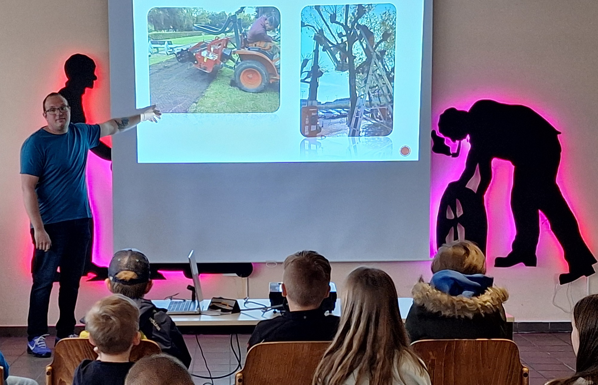 Dort wurden die Kinder von Betriebsleiterin Dr. Vanessa Wassong und Dominik Lieblang begrüßt. Der Meister im Garten- und Landschaftsbau und stellvertretende Abteilungsleiter Grünflächen führte die Kinder informativ und sehr kindgerecht durch den ganzen Betrieb. Überrascht waren die Kinder von der Vielfalt der Aufgaben des NBS, die eine bunte Präsentation zum Start anschaulich zeigte. Locker und mit kleinen Fragerunden gespickt erklärte Dominik Lieblang sehr umfassend wie wichtig die Arbeit von allen Mitarbeitern des NBS für die ganze Stadt ist. Fotos von Müllbergen nach Altstadtnächten oder Veranstaltungen, aber auch nach Vandalismus, rüttelten die Kinder auf. Es gab zahlreiche Infos und ganz nebenbei Einblicke in verschiedene Berufe. Große Augen gab es bei den Kids, wenn es ans Schätzen von Preisen einzelner Spielgeräte ging oder der Anzahl von Tischen und Bänken bei der Emmes.