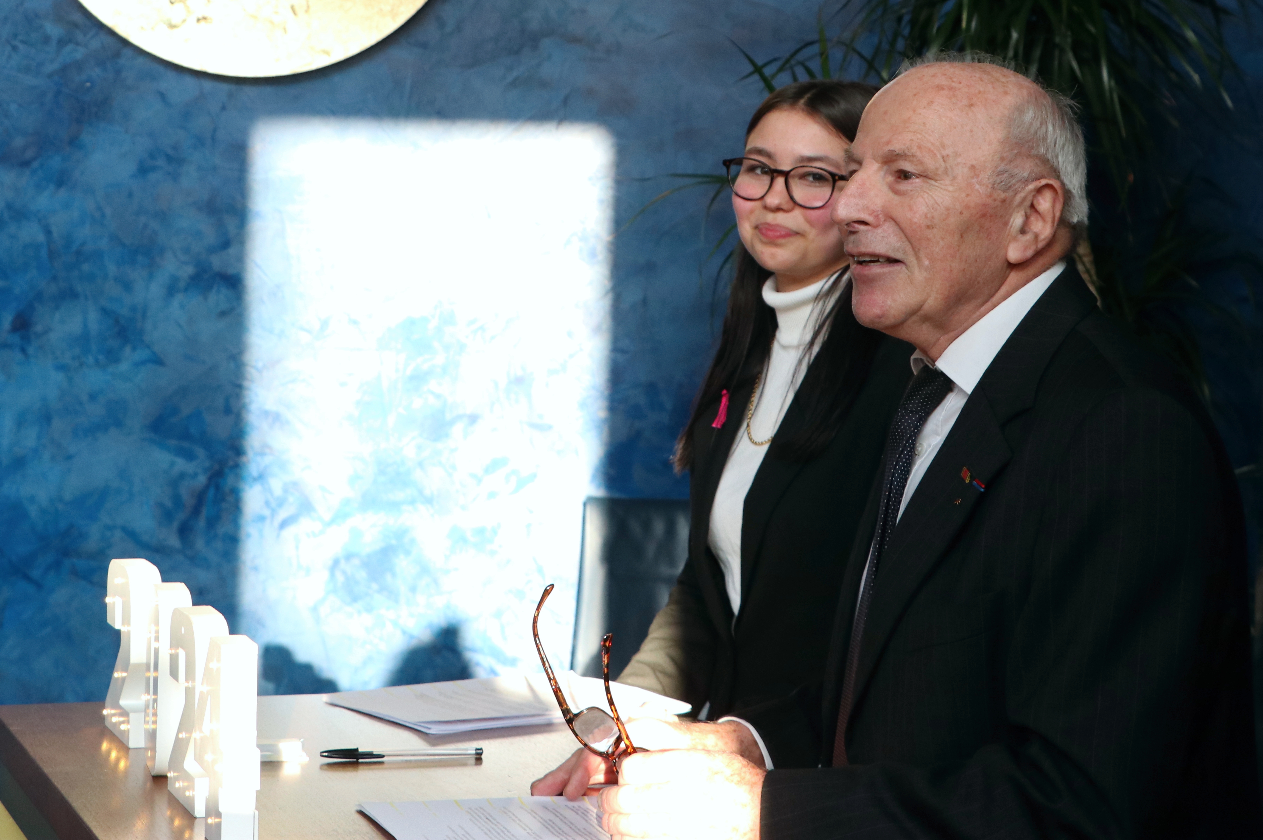 „2023 war ein besonders reiches Jahr für die deutsch-französischen Beziehungen mit allen Gedenkfeiern rund um den 60. Jahrestag des Elysée-Vertrages“, erinnerte Michel Bouchon, der seine Tochter Myriam beim Empfang vertrat. Zudem, erzählte er, bot sich dem Deutsch-Französischen Jugendwerk eine ganz große Bühne: So konnte dessen Generalsekretär die Arbeit der Organisation im Rahmen eines Vortrages über Jugend, Frieden und Sicherheit in der Generalversammlung der Vereinten Nationen vorstellen.