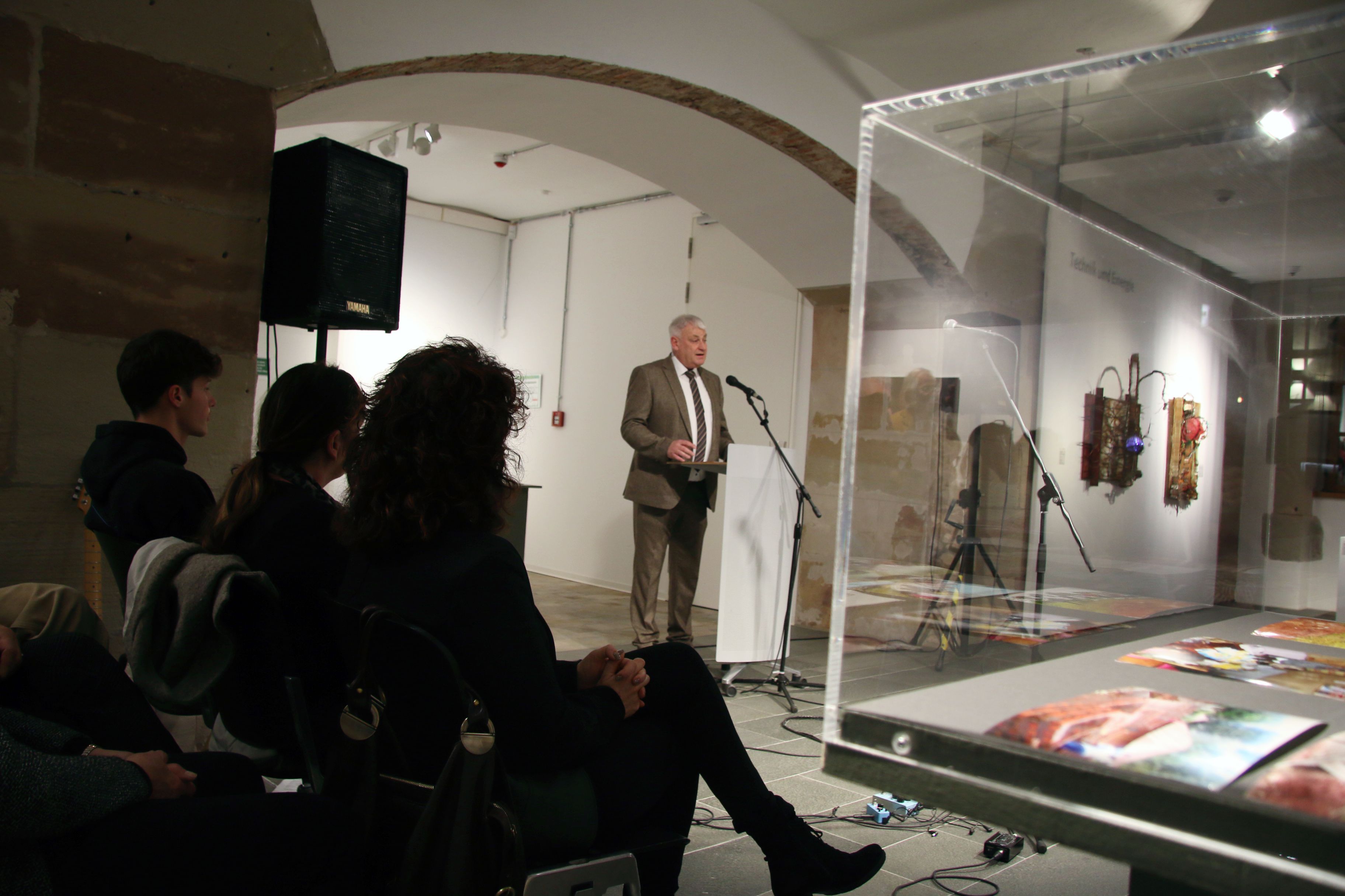 Zur Vernissage Anfang Februar konnte Oberbürgermeister Peter Demmer zahlreiche Gäste begrüßen, darunter Bürgermeisterin Marion Jost, Honorarkonsulin Myriam Bouchon und, in Vertretung der Ministerpräsidentin, Staatssekretär Sebastian Thul vom Ministerium für Umwelt, Klima, Mobilität, Agrar und Verbraucherschutz.