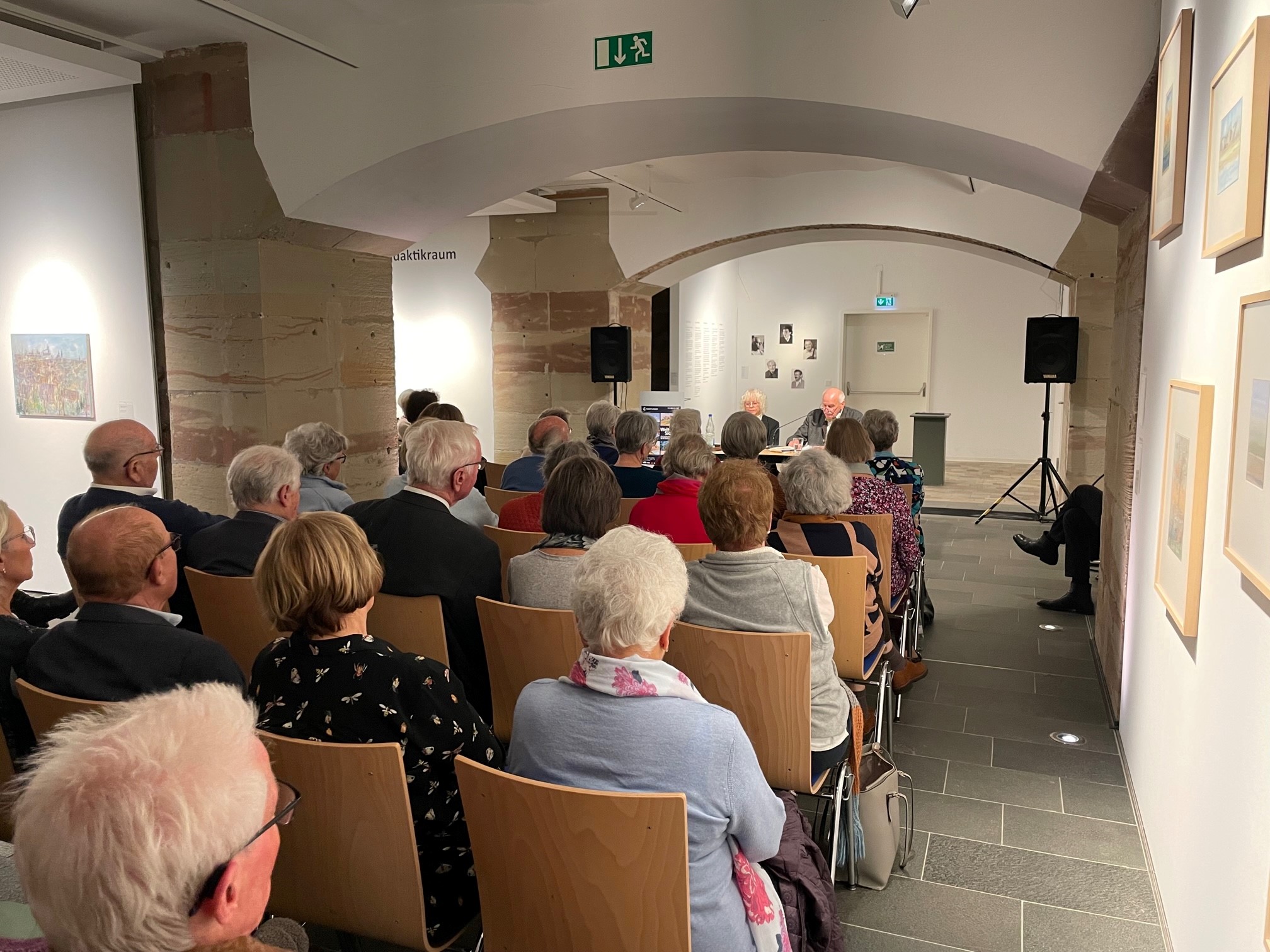 Unter dem Titel „Aufbruch – Wanderschaft – Ankunft“ trugen Georg Stockhausen (Saarlouis) und Gisela Bell (Überherrn) Texte aus verschiedenen Werken von Lisa Stromszky vor, die sich u.a. mit Flucht, Emigration und Europa auseinandersetzten. Die Texte, die bereits vor über 25 Jahren geschrieben worden waren, sind auch gerade heute wieder sehr aktuell und regten die Zuhörer*innen zum Nachdenken an.