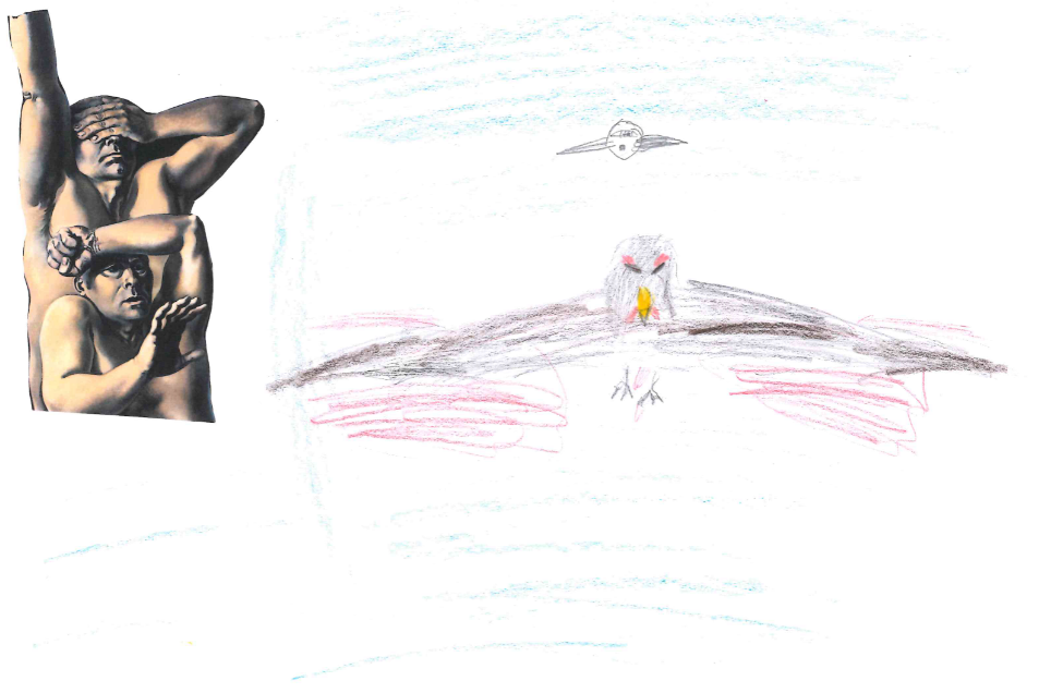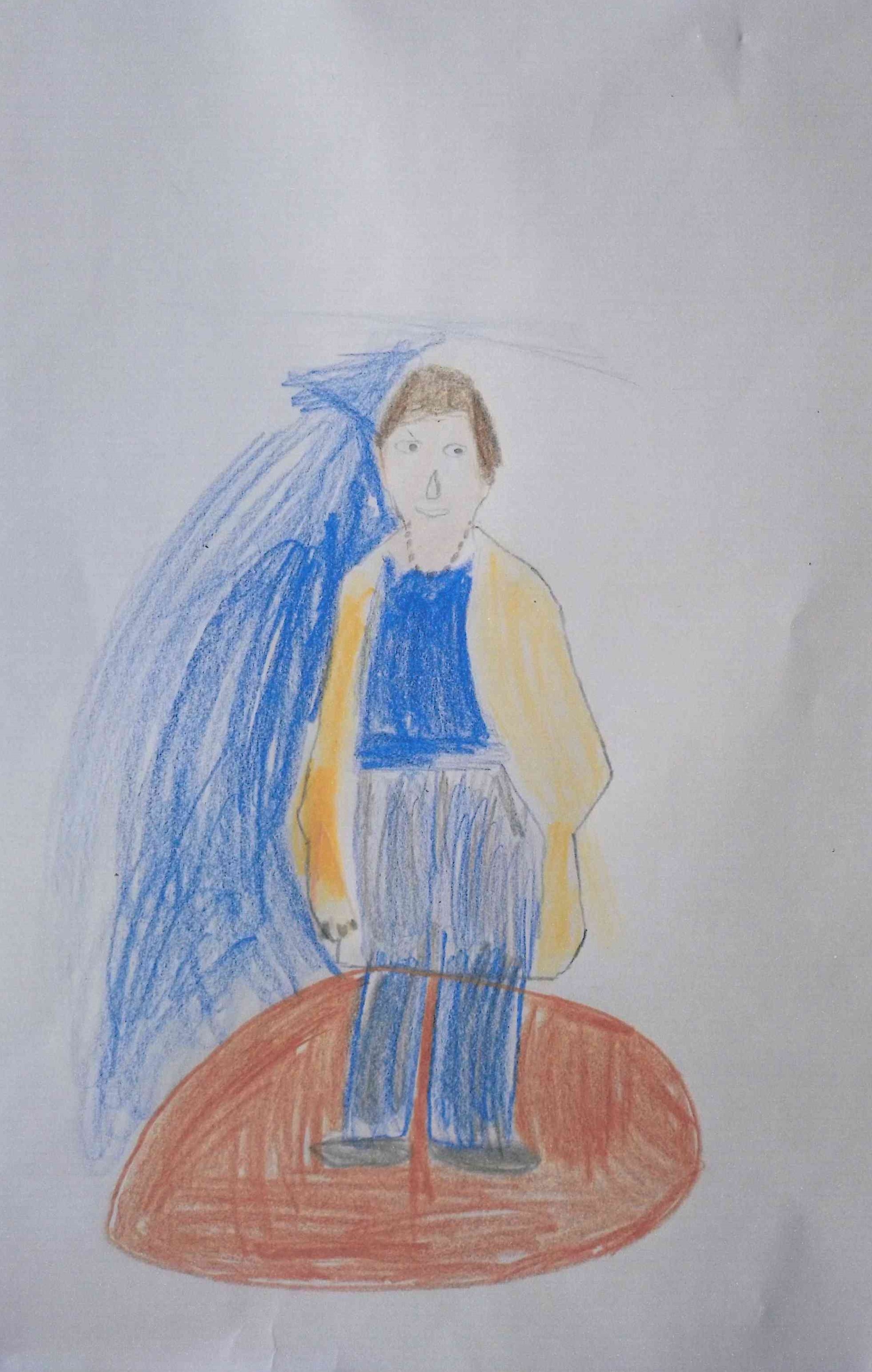 Dann war es Zeit für die Kinder, selbst kreativ zu werden. Sie hatten die Möglichkeit, das Bild Erschrecken von Wolfgang Mattheuer oder das Bild Mädchen auf der Straße von Norbert Wagenbrett weiterzuspinnen.