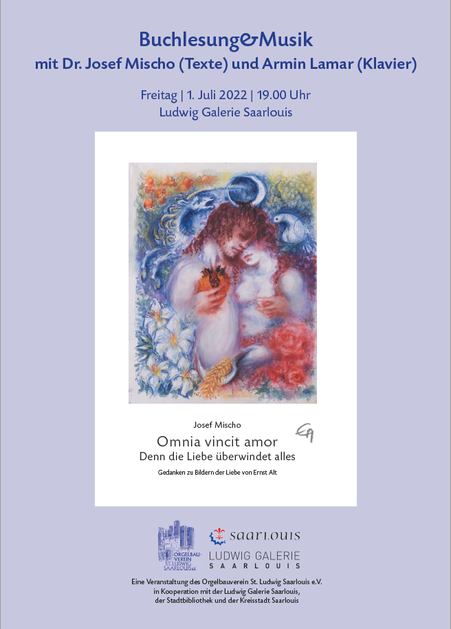 Am Freitag, 01. Juli 2022, liest Josef Mischo in der Ludwig Galerie Saarlouis aus seinem Buch „Omnia vincit amor – Denn die Liebe überwindet alles“.
