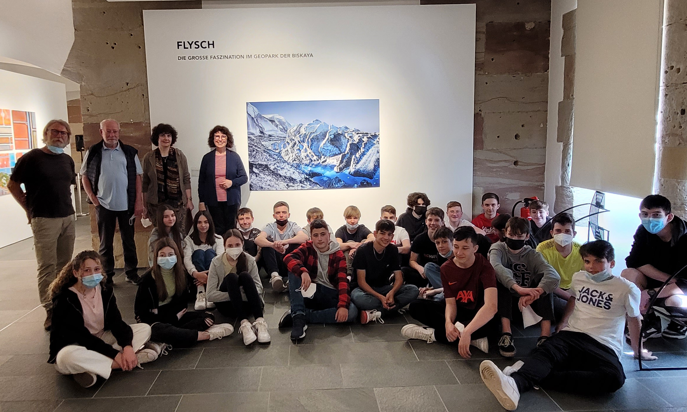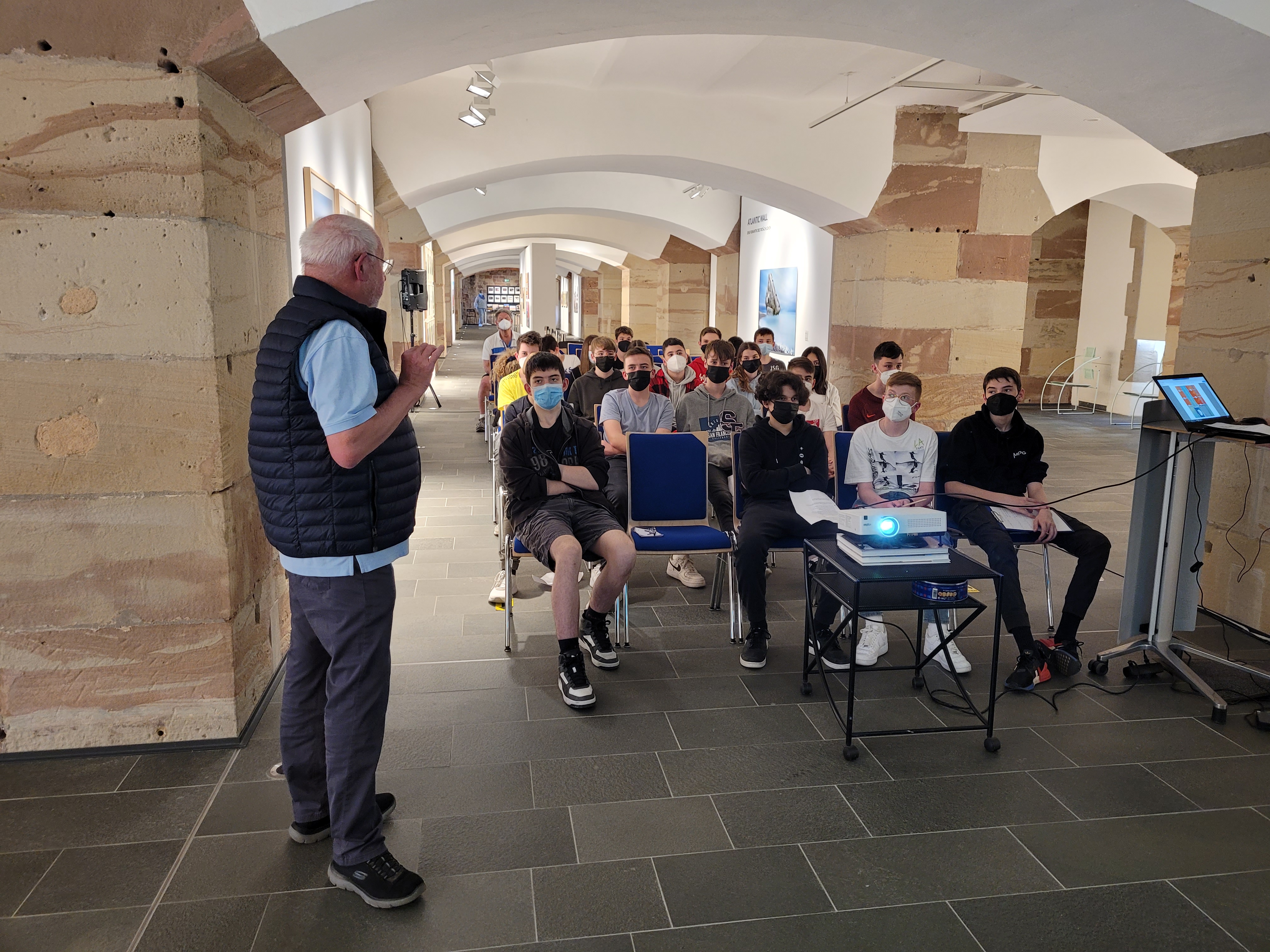 Nach den Osterferien traf sich die Schulklasse zum Künstlergespräch mit Werner Richner in der Ludwig Galerie Saarlouis. Die Schülerinnen und Schüler stellten Werner Richner Fragen zu seiner Lebens- und Berufsgeschichte, zum Arbeitsprozess vor und nach dem Motiv sowie zu seiner Intention. Werner Richner antwortete ausführlich auf alle ihm gestellten Fragen. Aber auch Werner Richner selbst war neugierig und wollte von den Schülerinnen und Schülern wissen, welches ihre Lieblingsmotive der Ausstellung waren. Hier war auch die Bannbreite weit gefächert, gemäß dem Titel der Ausstellung „Zwischen Himmel und Erde“.