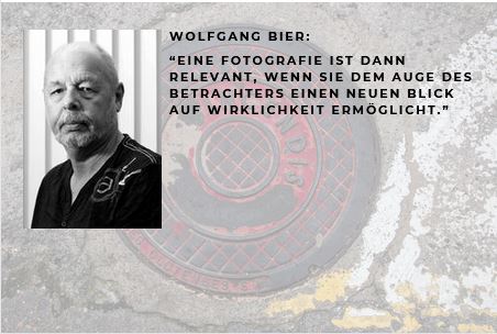 Wolfgang Bier lässt sich beim Spaziergang durch unbekannte Straßen von Architektur, Graffiti, Plakatwänden, Schaufensterscheiben, spiegelnden Metallflächen oder Kanaldeckel für seine Fotoarbeiten inspirieren. Die gezeigten Arbeiten sind allesamt in den Straßen deutscher und europäischer Städte entstanden.