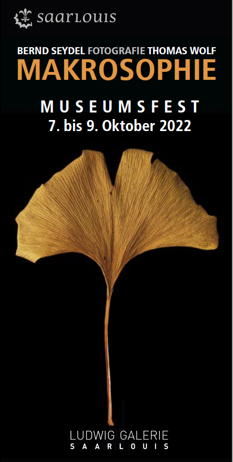 Im Rahmen der Ausstellung „Makrosophie“ – Fotografien von Bernd Seydel und Thomas Wolf lädt die Ludwig Galerie Saarlouis vom 7. bis 9. Oktober 2022 zu einem großen Museumsfest ein.