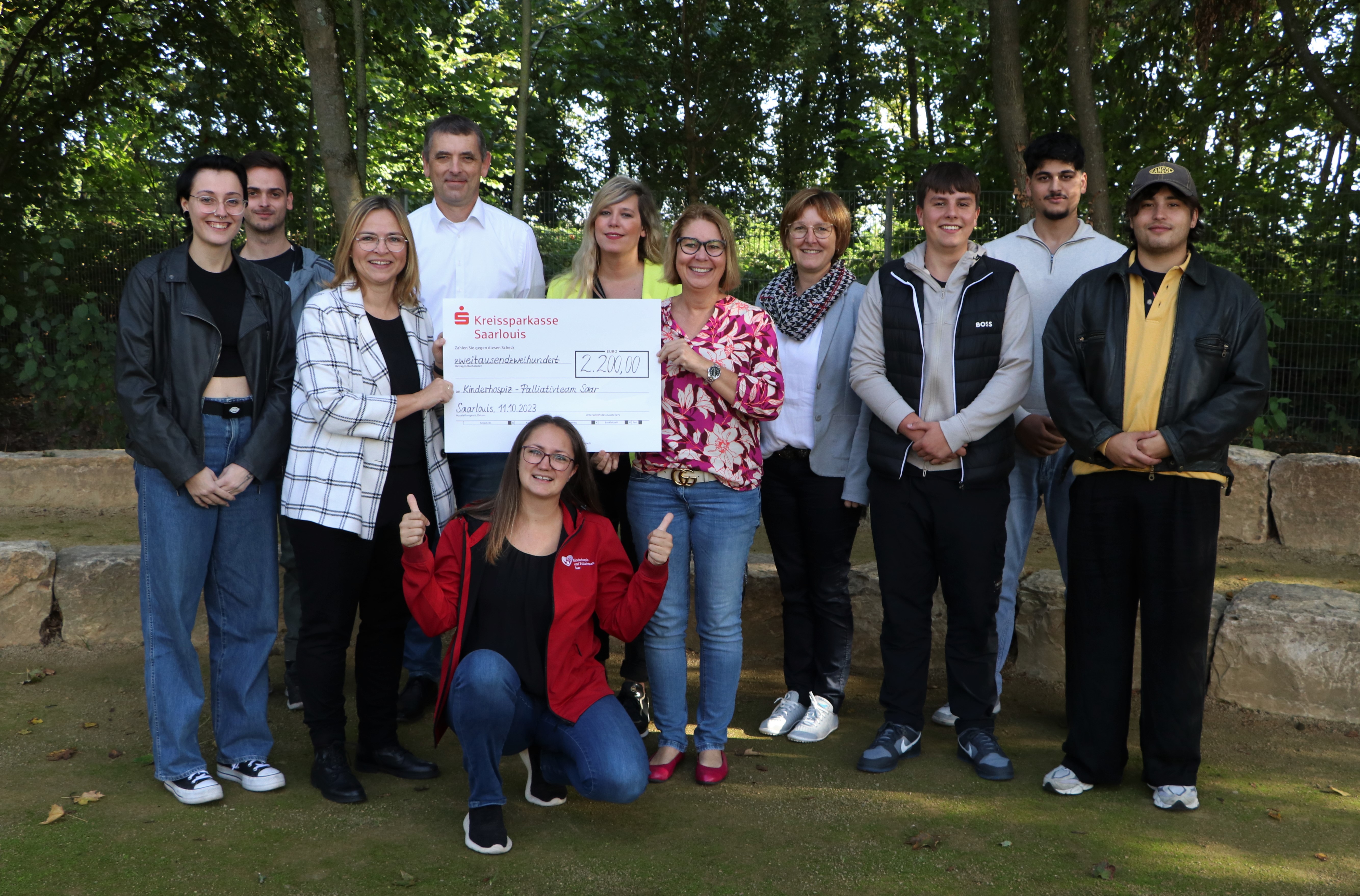 Das Kinderhospiz- und Palliativ Team unterstützt zur Zeit zirka 160 Familien in denen ein Kind lebenslimitierend erkrankt ist. So wird ermöglicht, dass die Kinder so lange es geht in ihren Familien leben können. Das Angebot reicht von Betreuung über Hunde-, Musik- oder Pferdetherapie bis hin zu Geschwisternachmittagen oder einer gemeinsamen Weihnachtsfeier. Ein wichtiges Standbein hierbei bilden vor allem die ehrenamtlichen Helferinnen und Helfer, momentan kann das Team auf 82 Ehrenamtliche zählen und ist darauf mächtig stolz. „Da wir ein rein spendenbasierter Dienst sind, freuen wir uns umso mehr, wenn wir von solchen tollen Aktionen wie der des KBBZ Saarlouis unterstützt werden. Wir wünschen den Schülerinnen und Schülern weiterhin viel Erfolg und Spaß an der Aktion und freuen uns sehr daran Teil zu haben.“, schloss Vanessa Fritzen vom Kinderhospiz- und Palliativdienst, als sie den Check in Empfang genommen hatte.