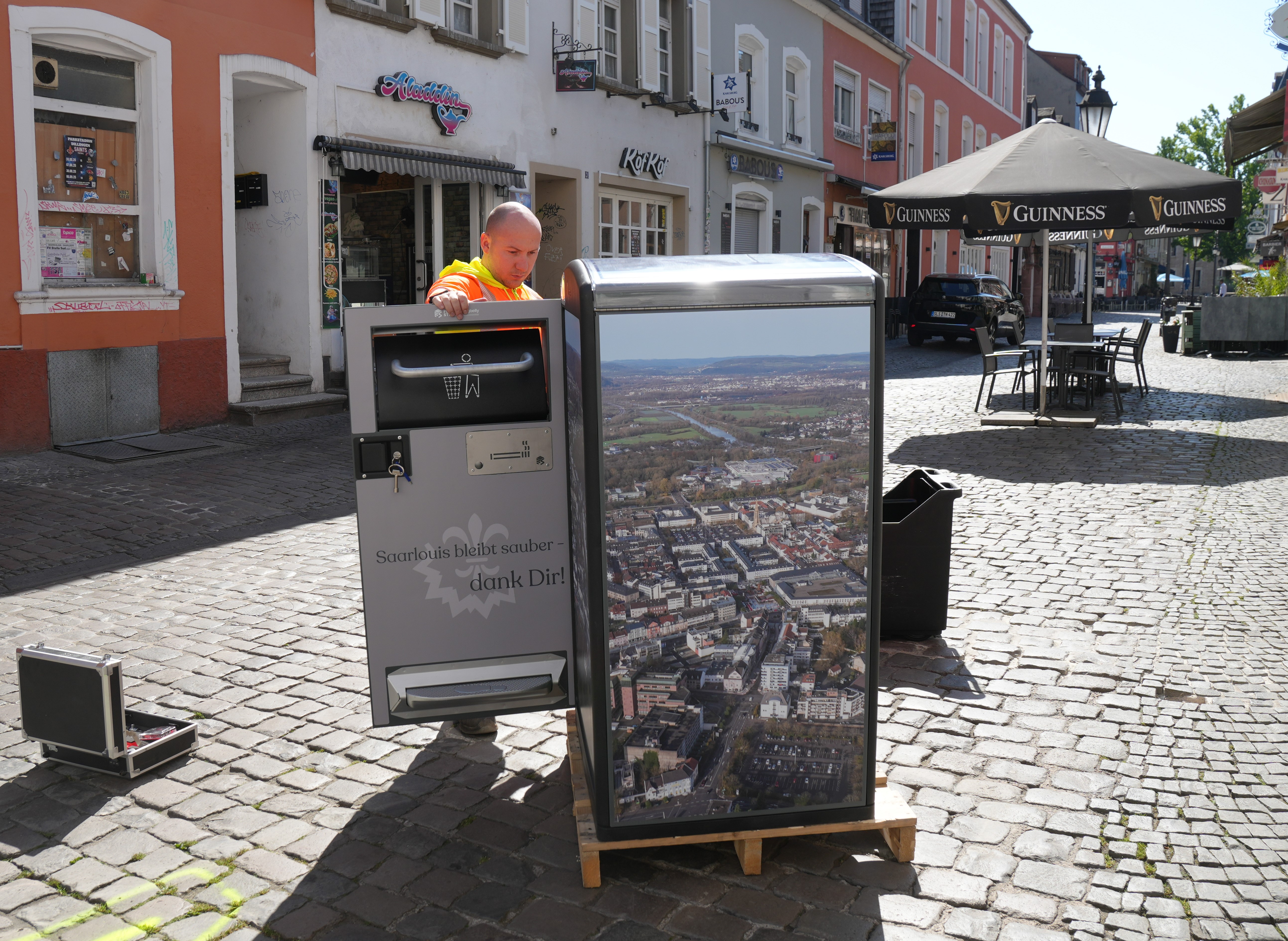 Die Initiative geht vom Neuen Betriebshof aus. Dazu der Werkleiter und Beigeordnete der Stadt Gerald Purucker: „Die Bigbellys sind ein kleiner Baustein zur Bewältigung des Müllproblems in der Saarlouiser Innenstadt. Die Müllgefäße zeichnen sich durch ihre kompakte Bauweise und einen integrierten Müllverdichter aus, der es ermöglicht, bis zum Vierfachen des üblichen Müllvolumens aufzunehmen. Dadurch müssen die Behälter deutlich seltener geleert werden – das spart nicht nur Personalressourcen, sondern auch CO₂-Emissionen, da unnötige Fahrten der Entleerungsteams vermieden werden. Zudem haben wir die Abfallbehälter mit einem Saarlouiser Motiv foliert. Sie fügen sich also auch optimal ins historische Stadtbild ein. Die innovativen Müllgefäße sind vorerst für ein halbes Jahr gemietet. Bewährt sich ihr Einsatz in der Praxis, so werden wir eine Anschaffung prüfen und evtl. sogar auf weitere Standorte ausweiten“.