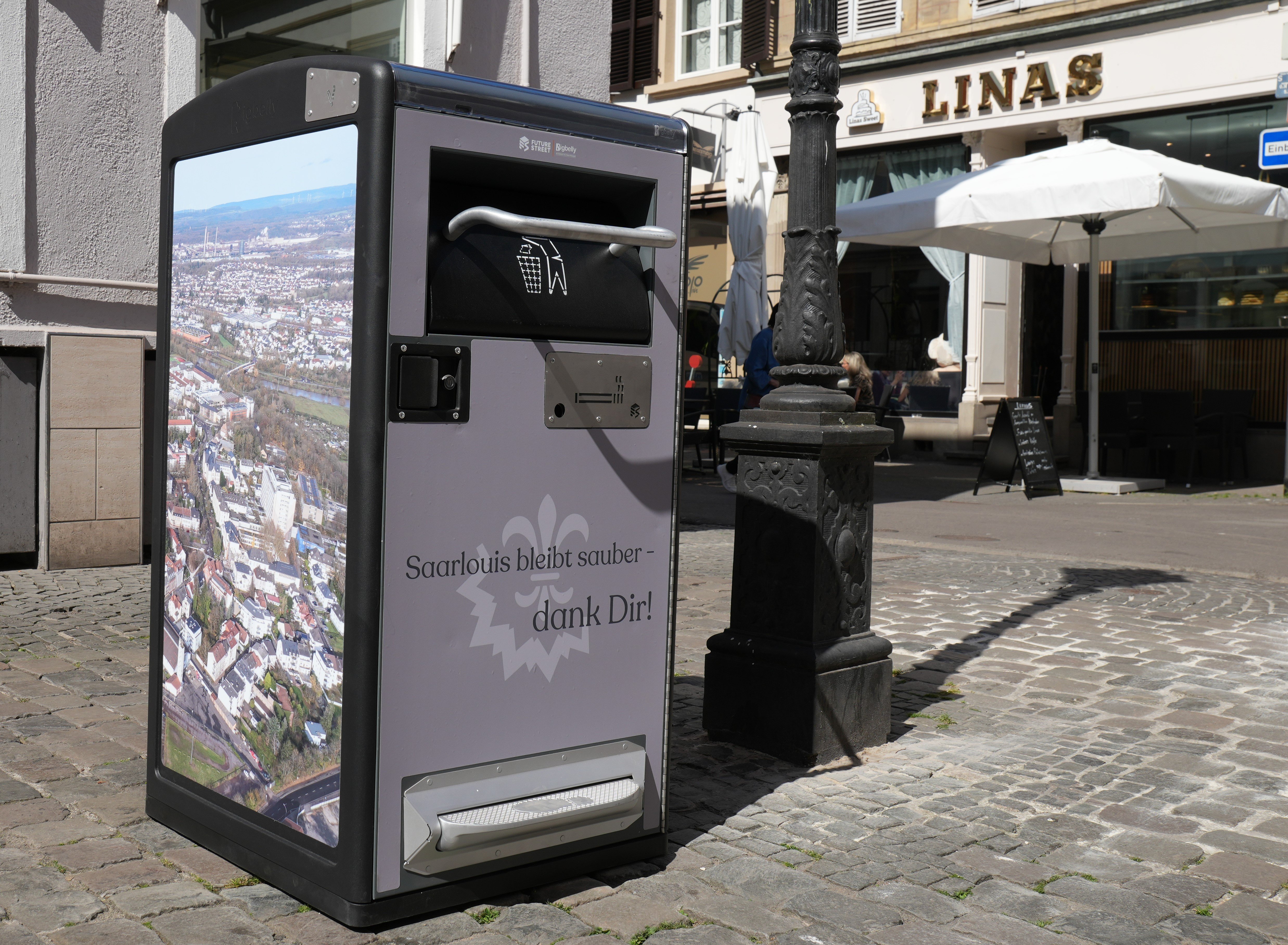 Die Europastadt Saarlouis setzt einen weiteren Schritt in Richtung Digitalisierung und Nachhaltigkeit im öffentlichen Raum. Seit Kurzem stehen in der Innenstadt fünf sogenannte Bigbelly-Abfallbehälter – ein intelligentes, solarbetriebenes Abfallsammelsystem mit integrierter Pressfunktion. Die modernen Behälter wurden in der Bierstraße, der Sonnenstraße, am Kleinen Markt sowie am Großen Markt installiert.