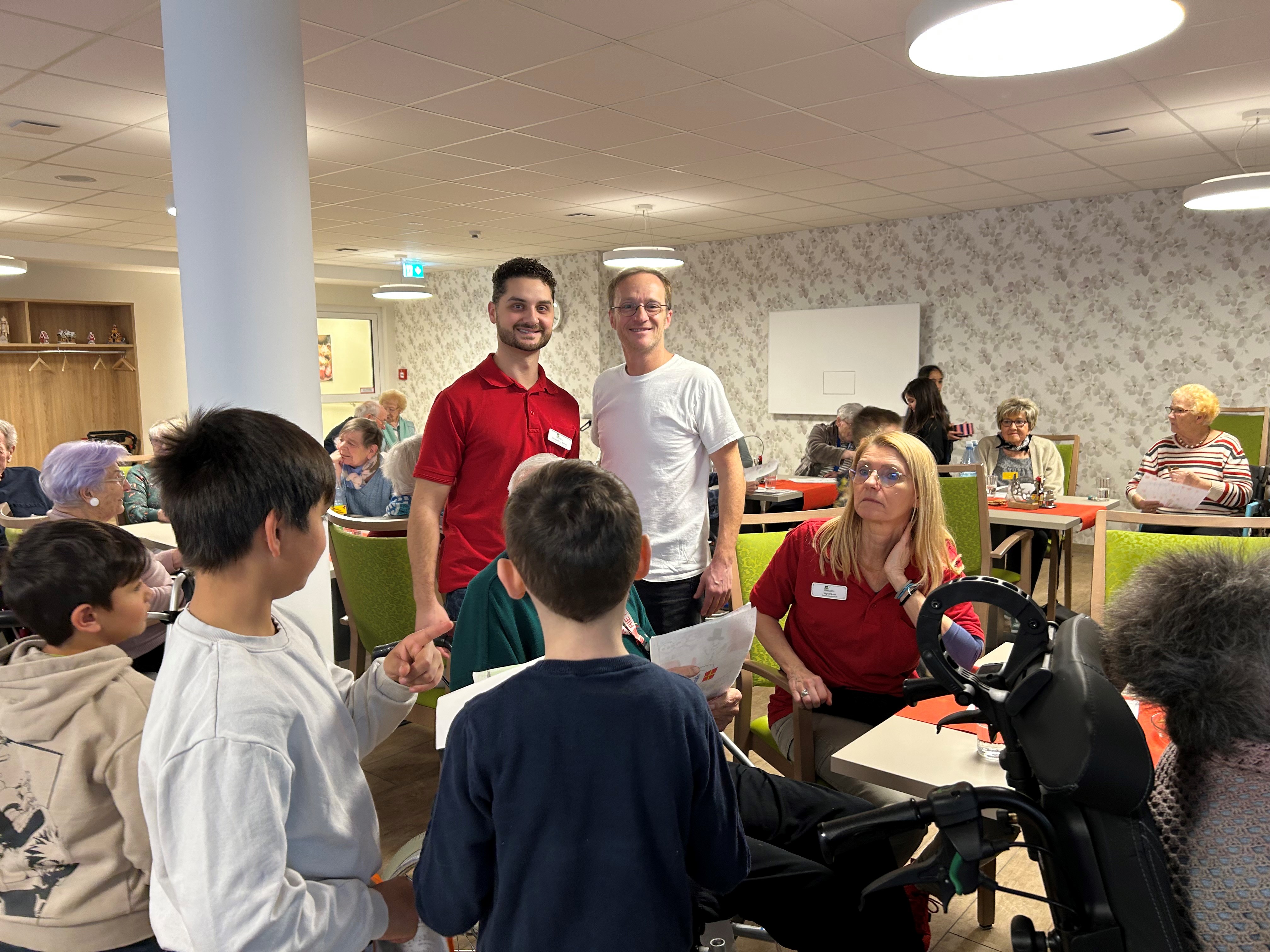 Kurz vor Weihnachten herrschte eine besonders festliche Stimmung im Haus Michael. Einige Schülerinnen und Schüler der Grundschule Im Alten Kloster hatten sich etwas ganz Besonderes ausgedacht: Sie besuchten die Seniorinnen und Senioren, um gemeinsam den Zauber der Weihnachtszeit zu feiern.