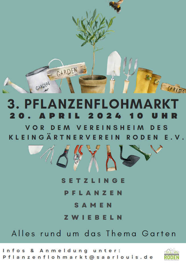 Der Pflanzenflohmarkt findet am Samstag, den 20. April 2024, vor dem Vereinsheim des Kleingärtnervereins Roden statt. Aufbaubeginn ist um 9:00 Uhr. Im Anschluss haben die Pflanzenliebhaber*innen bis ca. 14:00 Uhr Zeit, die Vielfalt des Angebots zu durchstöbern.