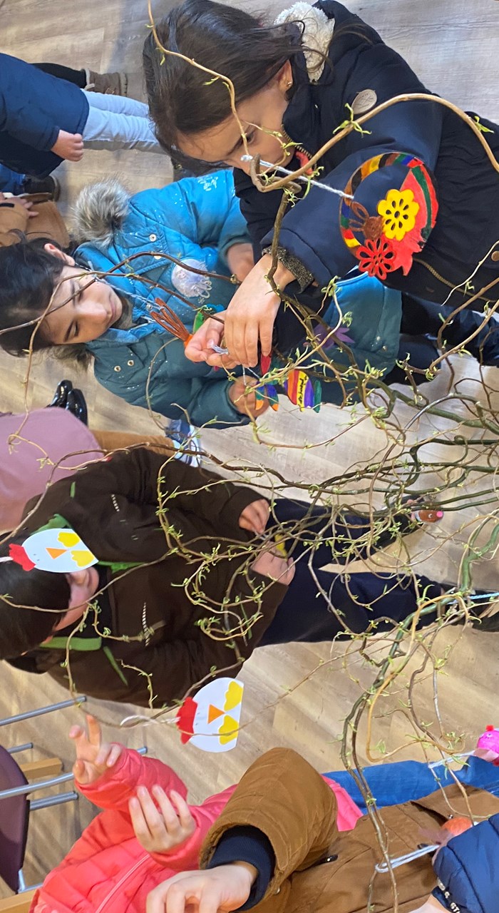 Die Kinder der Grundschule Römerberg haben fleißig gebastelt und mit ihren bunten Anhängern unseren Osterstrauß verschönert.
