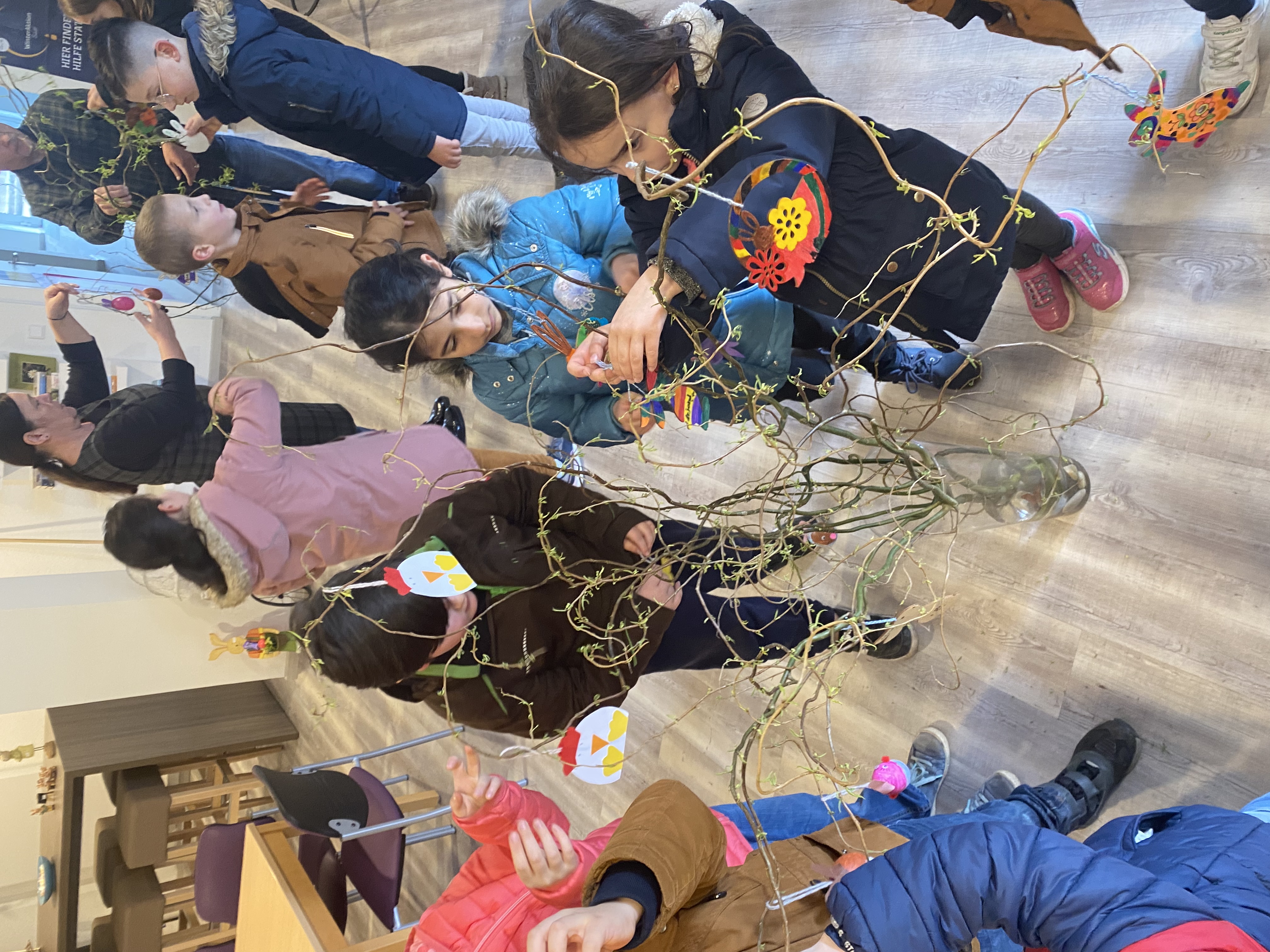 Die Kinder der Grundschule Römerberg haben fleißig gebastelt und mit ihren bunten Anhängern unseren Osterstrauß verschönert.