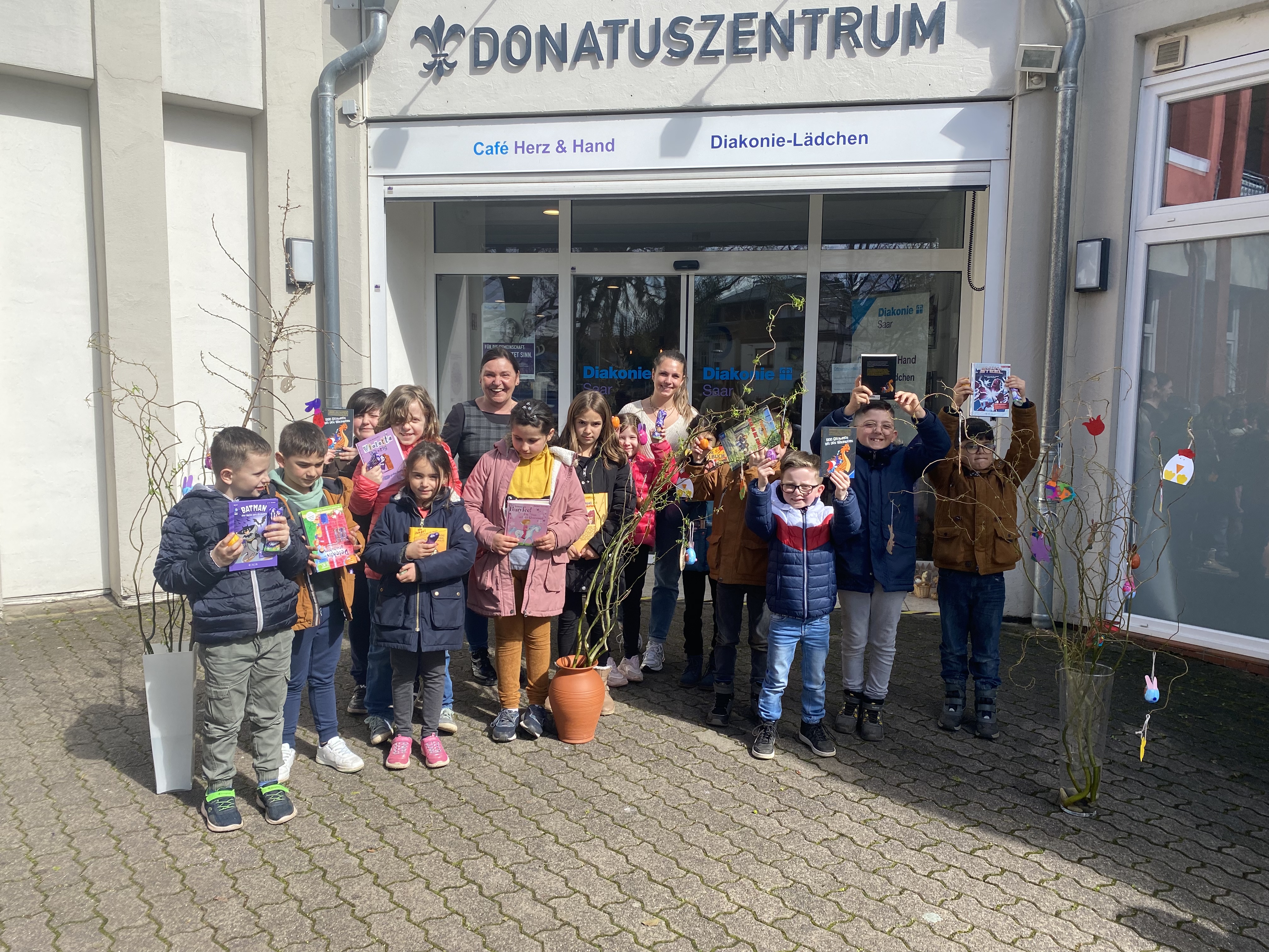 Als Dank hatte der Osterhase noch eine Kleinigkeit versteckt, so bekam jedes Kind einen Schokohasen, ein Ei und ein Buch geschenkt.