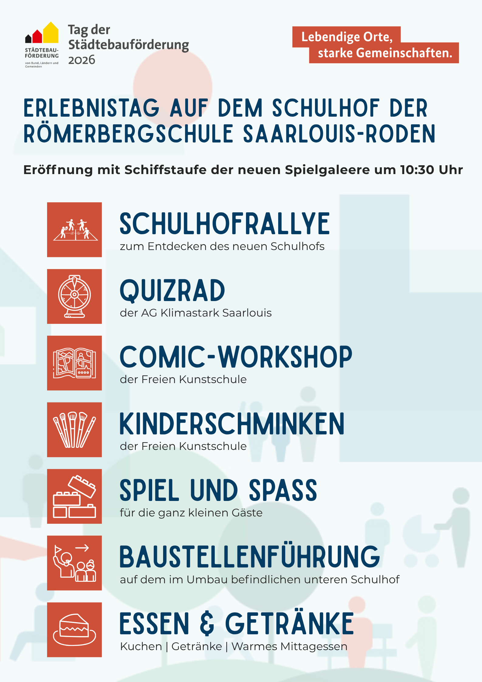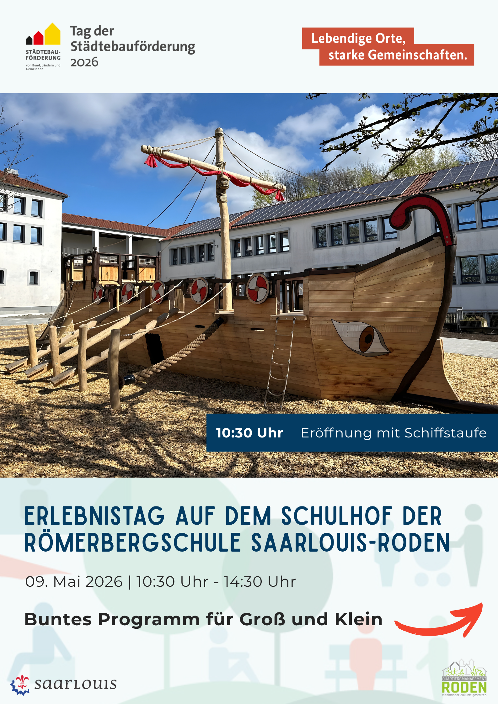 Am Samstag, den 9. Mai 2026 lädt die Europastadt Saarlouis von 10:30 Uhr bis 14:30 Uhr zu einem Erlebnistag auf dem neu gestalteten Schulhof der Römerbergschule Saarlouis-Roden ein. Ein abwechslungsreicher Tag mit vielfältigen Angeboten steht bevor.