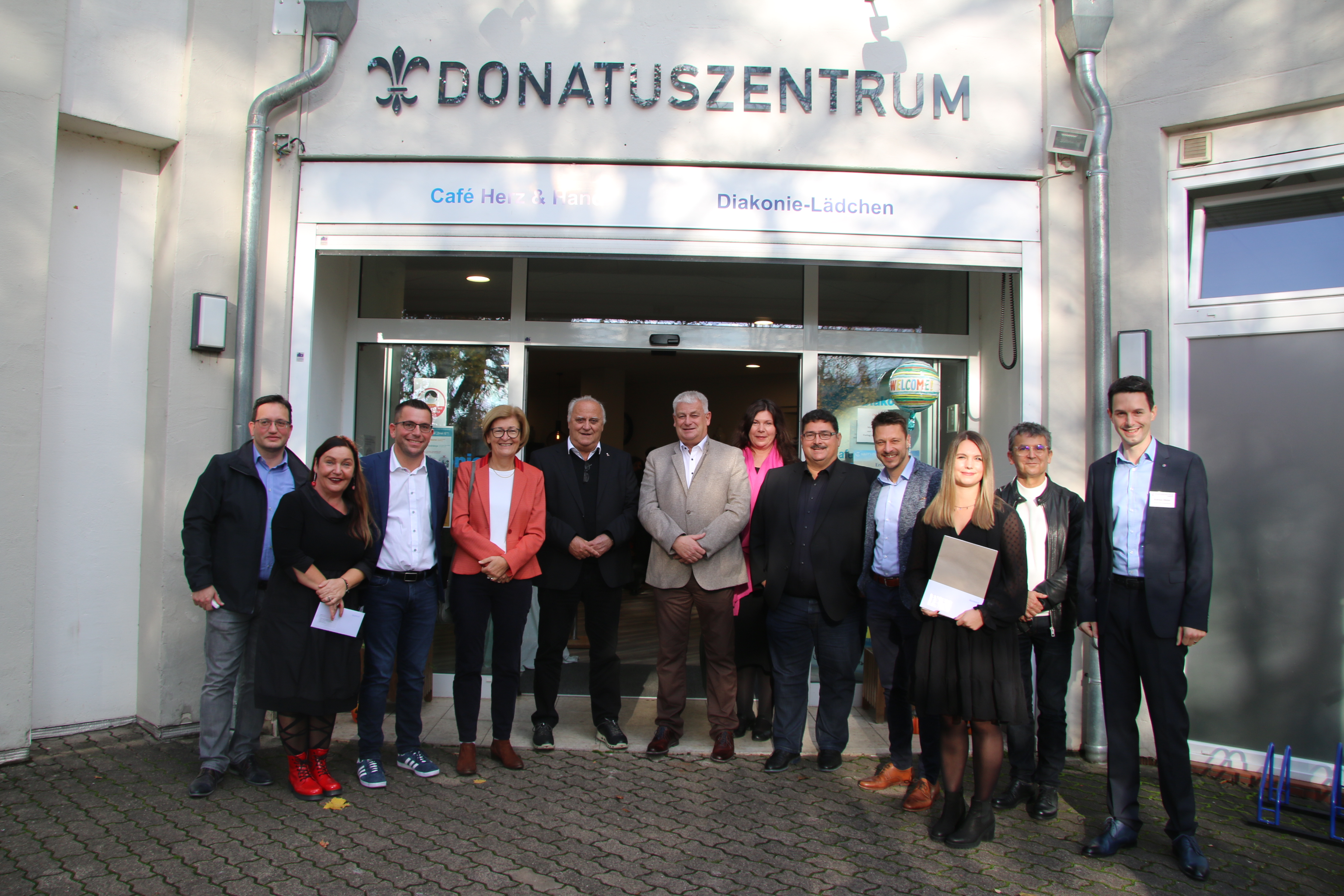 Wohnungen, Vereinsräume, die Gaststätte „Donatus-Biergarten“ und die Donatus-Apotheke waren bisher in dem weitläufigen Gebäudekomplex in der Rodener Schulstraße ansässig. Nach einem umfangreichen Umbau der Geschäftsräume des ehemaligen Cap-Marktes vervollständigen nun das Quartiersmanagement, die Volkshochschule und die Diakonie mit einer Außenstelle des Sozialkaufhauses und dem Café „Herz und Hand“ das neue Donatuszentrum.