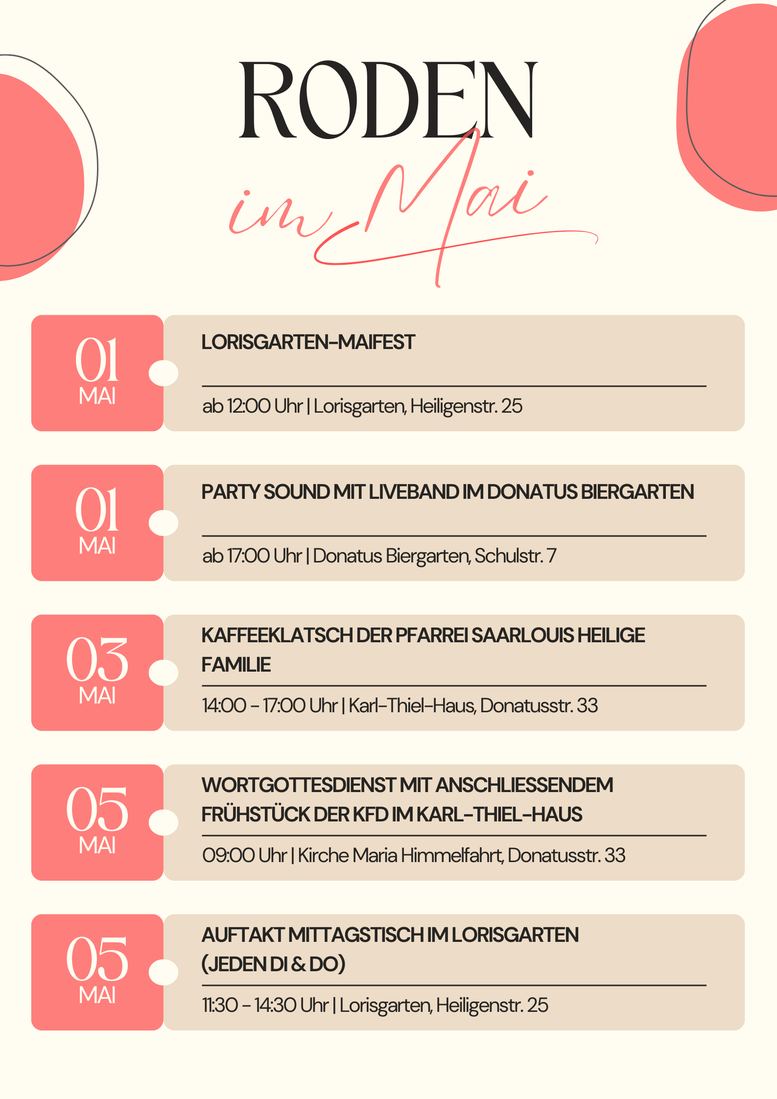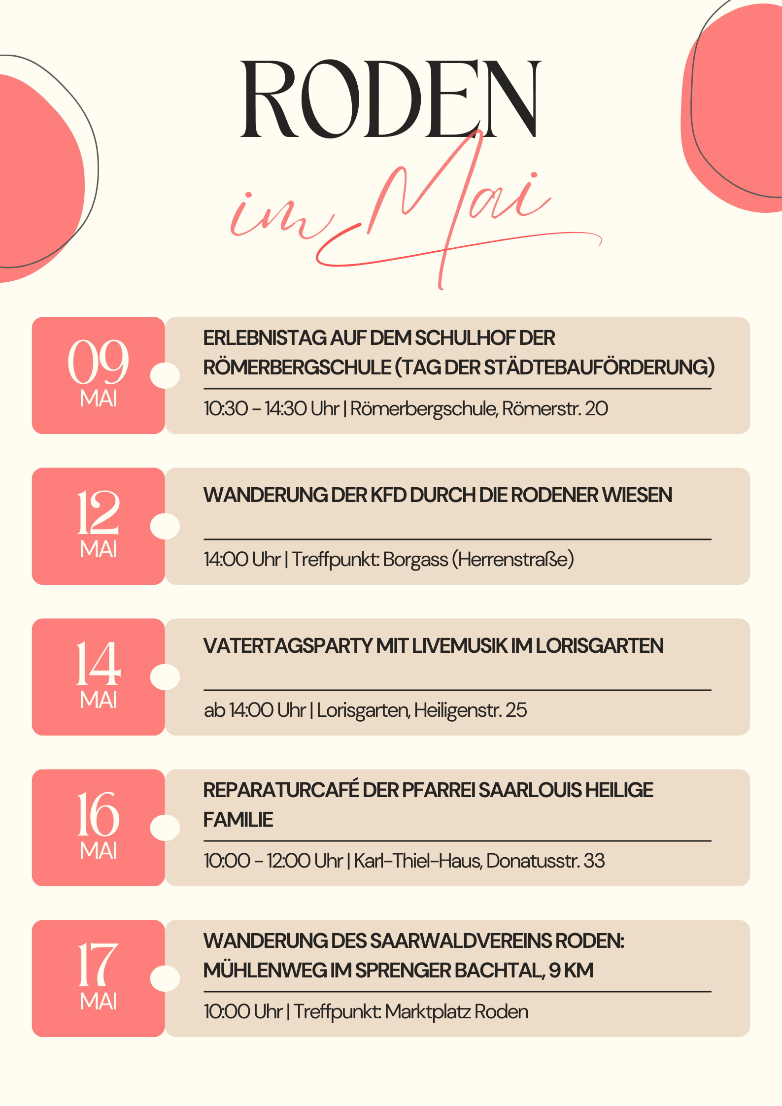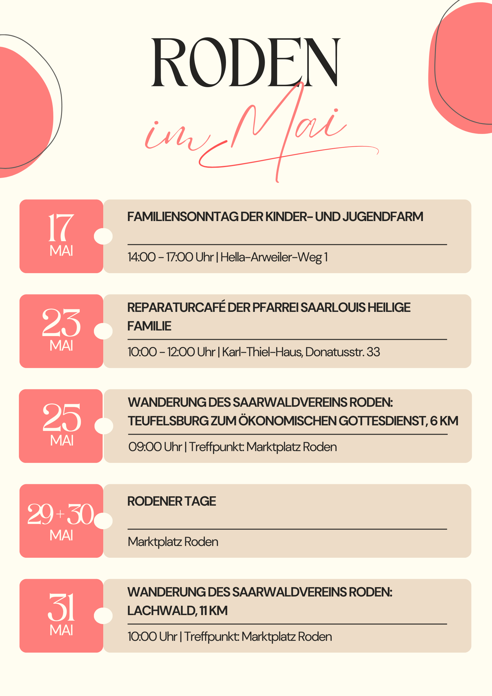 Wir freuen uns über viele Teilnehmende und einen lebendigen Mai in Roden!