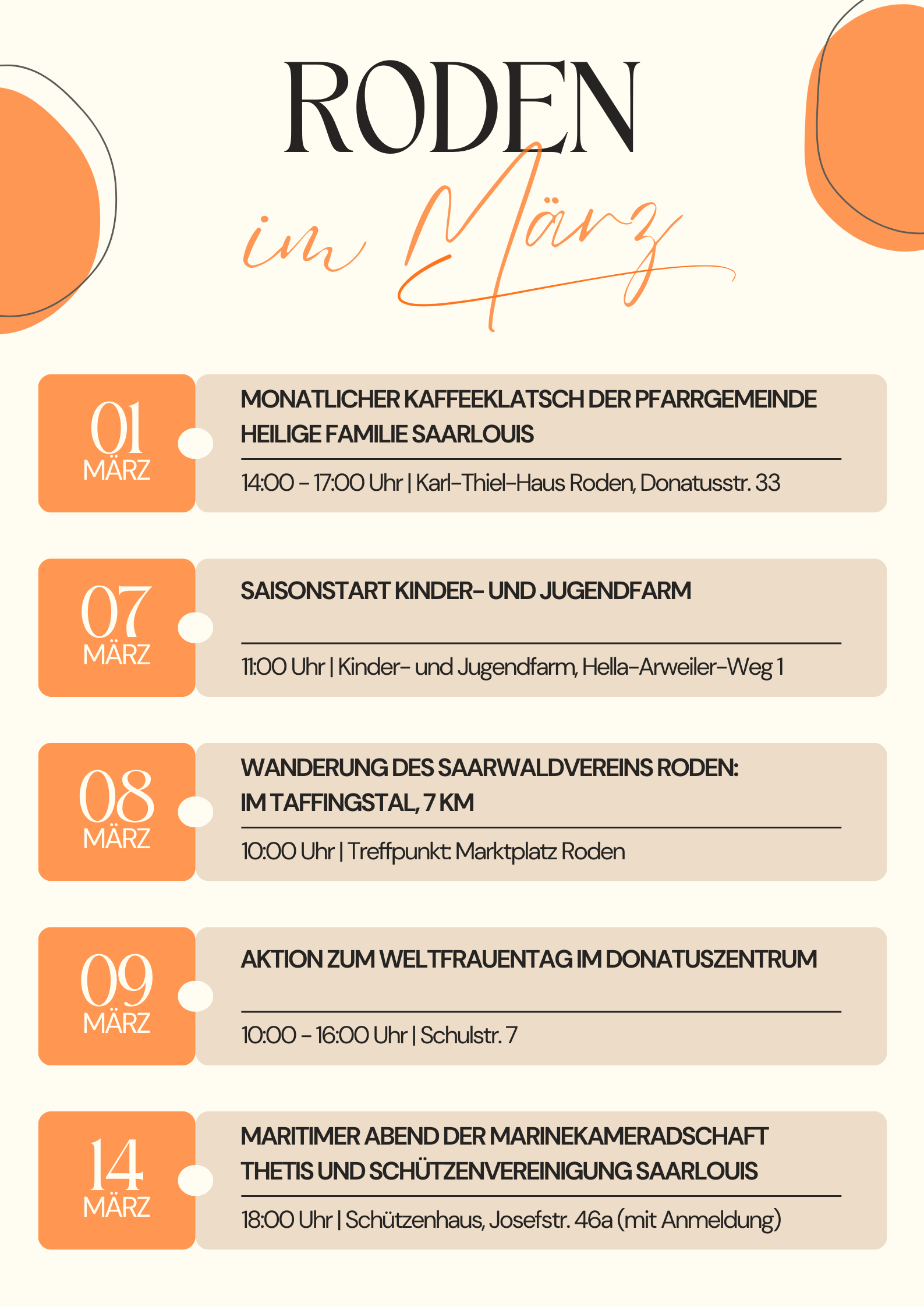Wir freuen uns über viele Teilnehmende und einen lebendigen März in Roden!