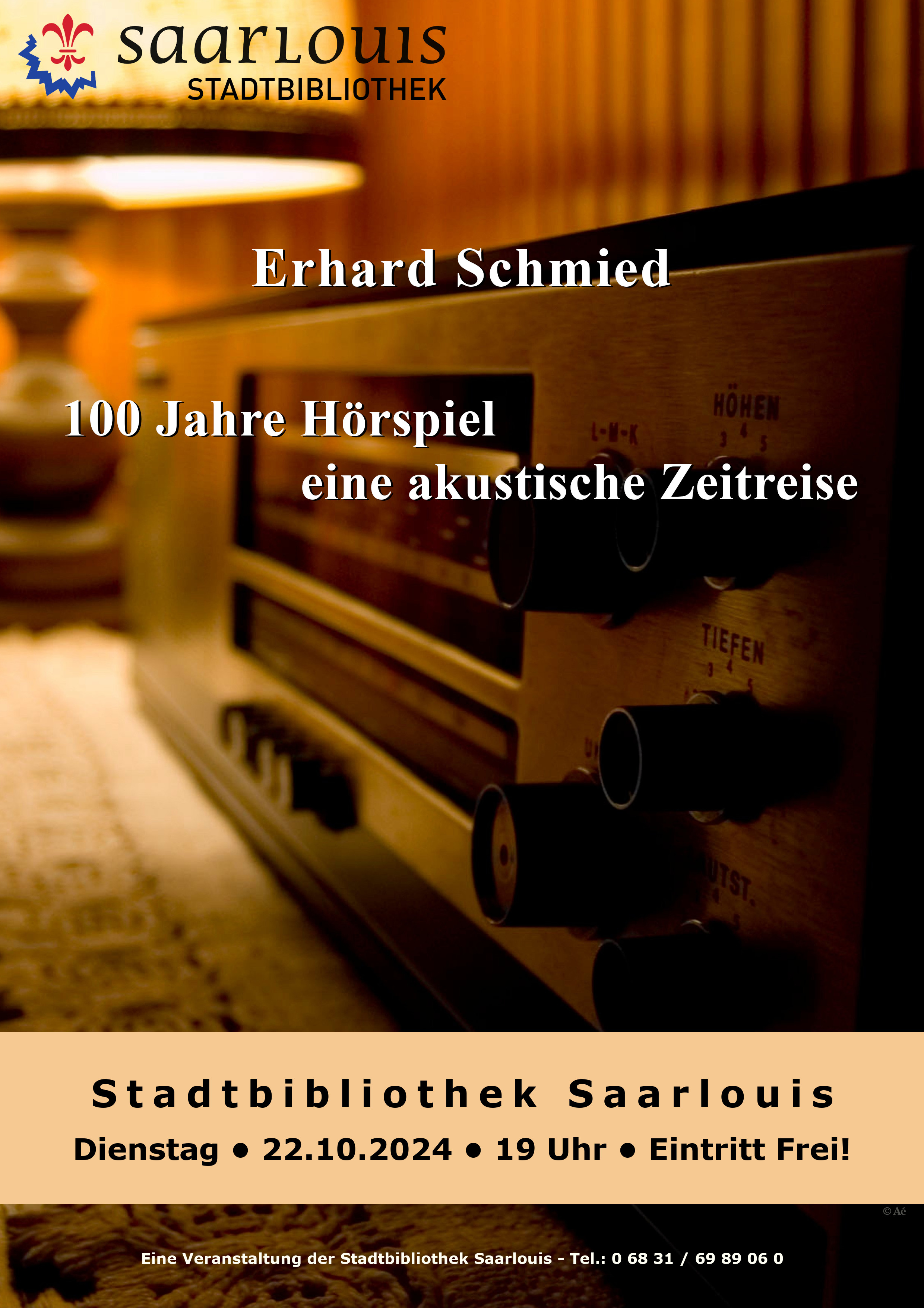 Zu „100 Jahre Hörspiel – eine akustische Zeitreise“ mit Erhard Schmied lädt die Stadtbibliothek Saarlouis am Dienstag, 22. Oktober 2024 um 19 Uhr in das Theater am Ring Saarlouis ein. Einlass ist ab 18:30 Uhr. Der Eintritt ist frei.
