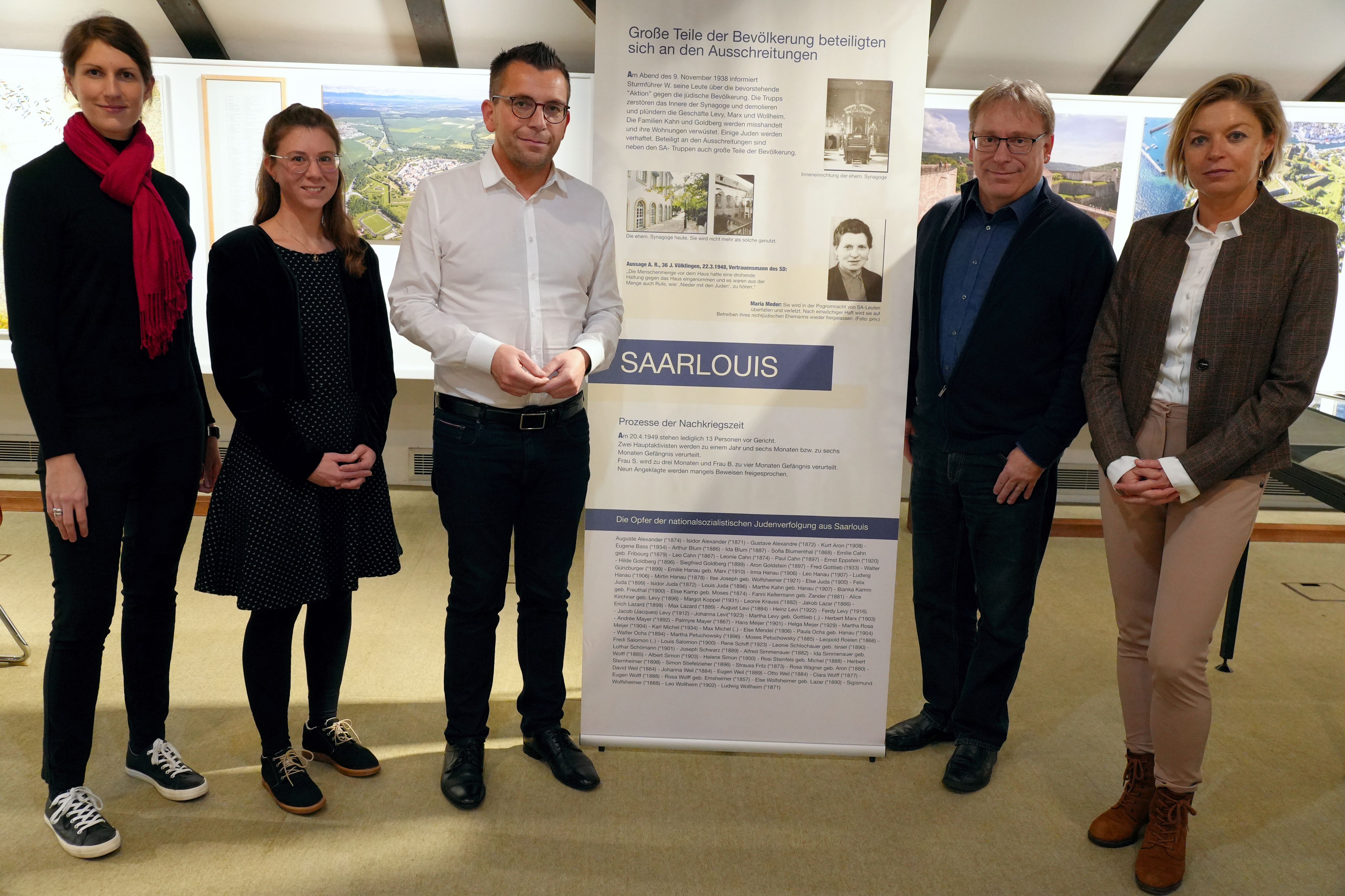 Gemeinsam die Erinnerung aufrechterhalten: Lisa Geimer-Klein, Celina Grasse, Marc Speicher, Julia Hennings und Benedikt Loew bei der Ausstellungseröffnung im Städtischen Museum Saarlouis. Foto: Petra Molitor