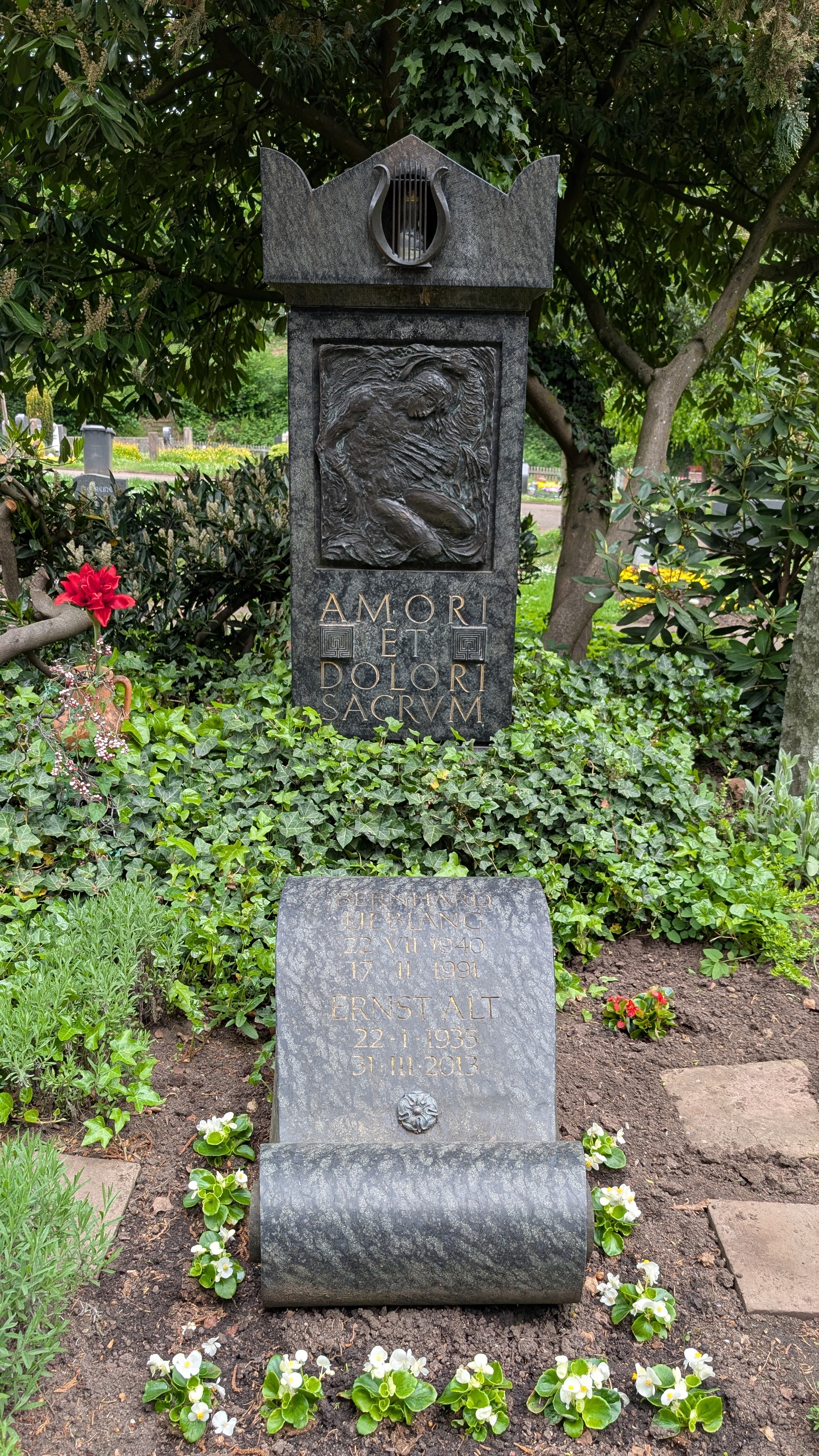 Auf dem Friedhof St. Arnual, der Grabstätte des Künstlers, berichtete Heribert Denzer von zahlreichen Begegnungen mit dem Künstler, der vor seinem Tod auch zahlreiche andere Grabmäler auf dem Friedhof gestaltete. Unter den Teilnehmenden waren auch mehrere Gäste, die Ernst Alt persönlich kannten, bevor er 2013 verstarb.