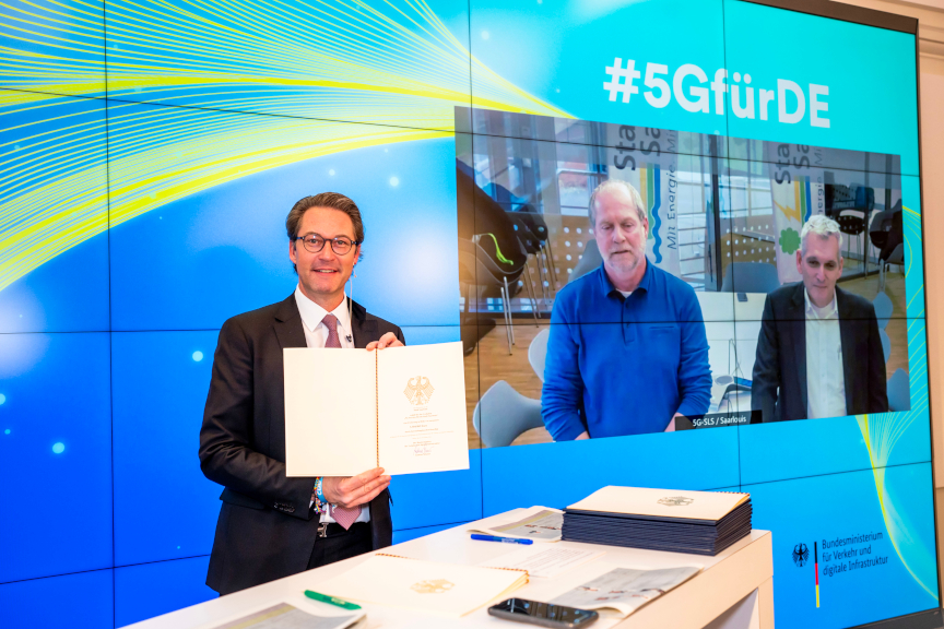 Bundesminister Andreas Scheuer hat in einer digitalen Veranstaltung insgesamt 14 Konsortien bestehend aus Kommunen und Landkreisen eine Förderung Ihrer 5G-Projekte in Höhe von insgesamt 36,6 Millionen Euro überreicht. Davon wurden Saarlouis 3,4 Mio. € an Fördergeldern zugesprochen.