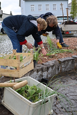 Auf dem Rodener Marktplatz bepflanzte die AG Klimastark mit dem NBS zwei öffentliche Beete mit hitze- und trockenheitsverträglichen Stauden. Sie dienen als Vorbild für pflegeleichte Privatgärten und öffentliche Grünflächen.