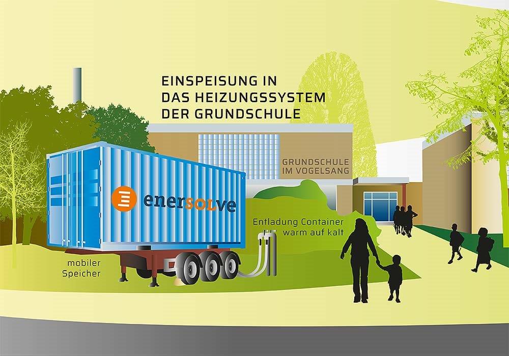Die Wärme wird mit mobilen Latenwärmespeichern transportiert.