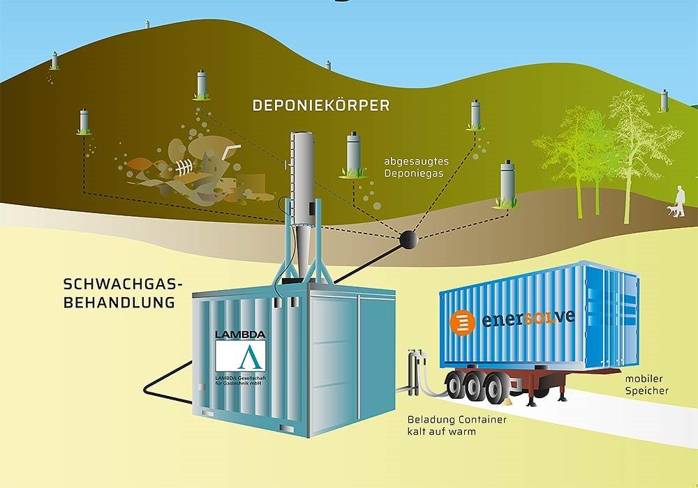 Mit entsprechenden Fördergeldern wurde auch die Installation einer Schwachgasbehandlungsanlage mit nachgeschalteter Wärmeauskopplung auf der Altdeponie Saarlouis-Lisdorf finanziert. Die Anlage ist seit September 2017 in Betrieb und macht auch geringe Methankonzentrationen im gefassten Deponiegas unschädlich. Pro Jahr werden dadurch in Summe etwa 1800t an CO2-Äquivalenten eingespart. Die Anlage stellt durch schadlose Verbrennung des Gases die Wärme zur Verfügung, die mittels mobiler Speicher zu zwei Grundschulen der Kreisstadt Saarlouis transportiert und dort genutzt wird.
