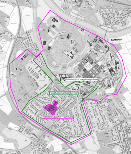 Der Hauptuntersuchungsbereich beschränkt sich dabei nicht ausschließlich auf das nahe Umfeld der Schule, sondern umfasst auch Teile der Innenstadt und die Gartenreihen.